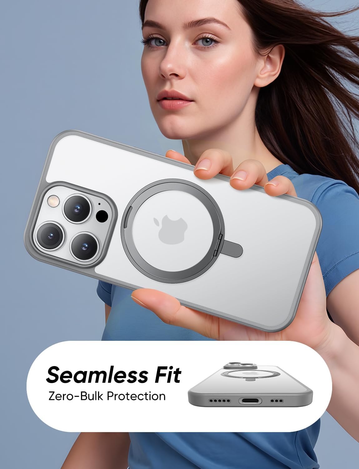 MAGIC JOHN 360° Rotatable Magnetic Invisible Stand for iPhone 14 Pro Case [Anti-Slip Grip] [Compatible with MagSafe] 16FT Shockproof for iPhone 14 Pro Case with Kickstand, Gray