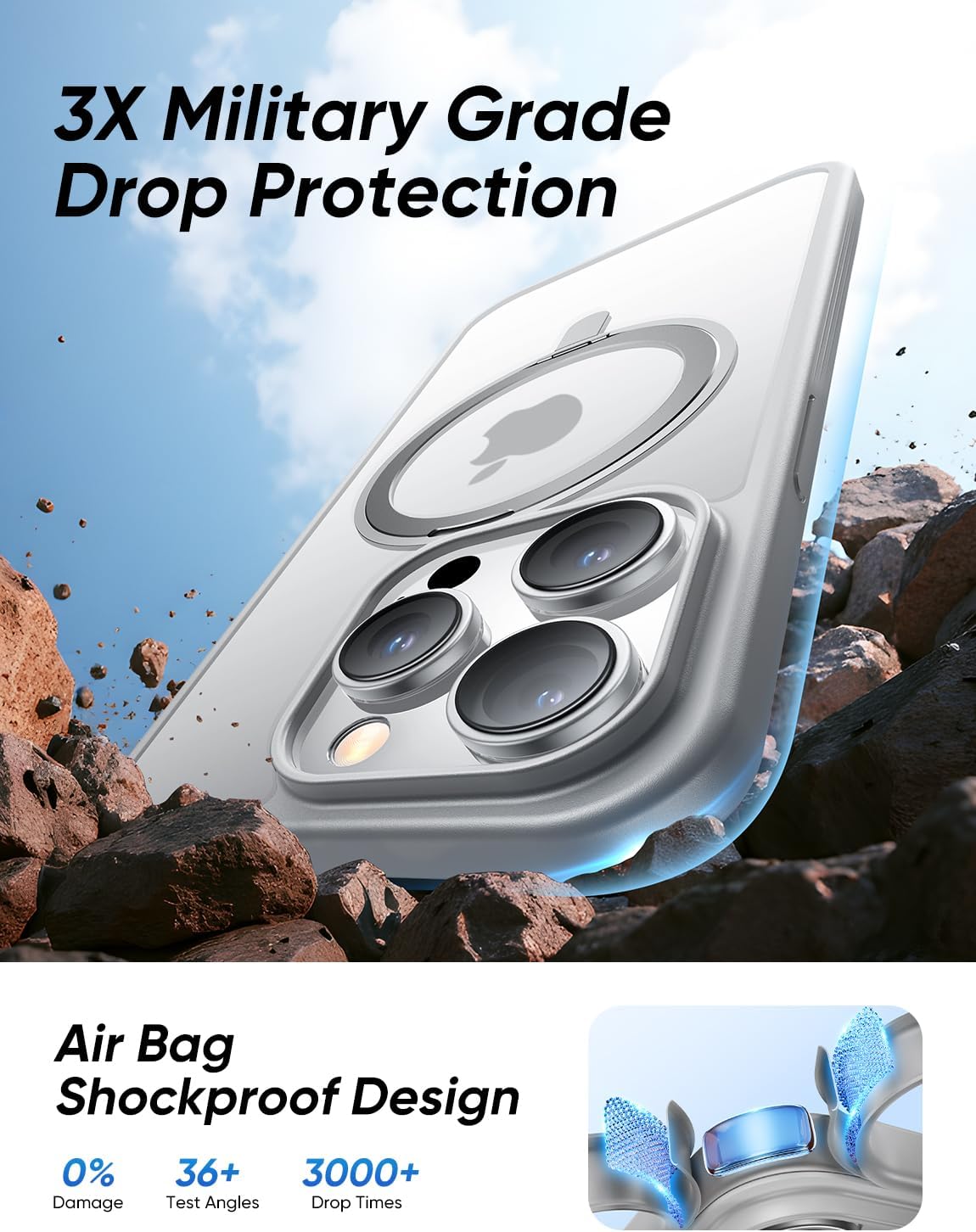 - [Tougher Than Ever] The case iphone 14 pro max built-in 360° impact-absorbing airbags and X-Shock 3.0 four-corner airbags protect your Phone against everyday drops and bumps. Furthermore, the shockproof polycarbonate back and the air pad increase its durability. A 1.8 mm offset border over the camera opening prevents the lens from being scratched, and a 0.8 mm bezel over the screen keeps your Phone screen from damage. Magic JOHN case's DURABILITY AND STURDINESS surpass most general Phone cases.