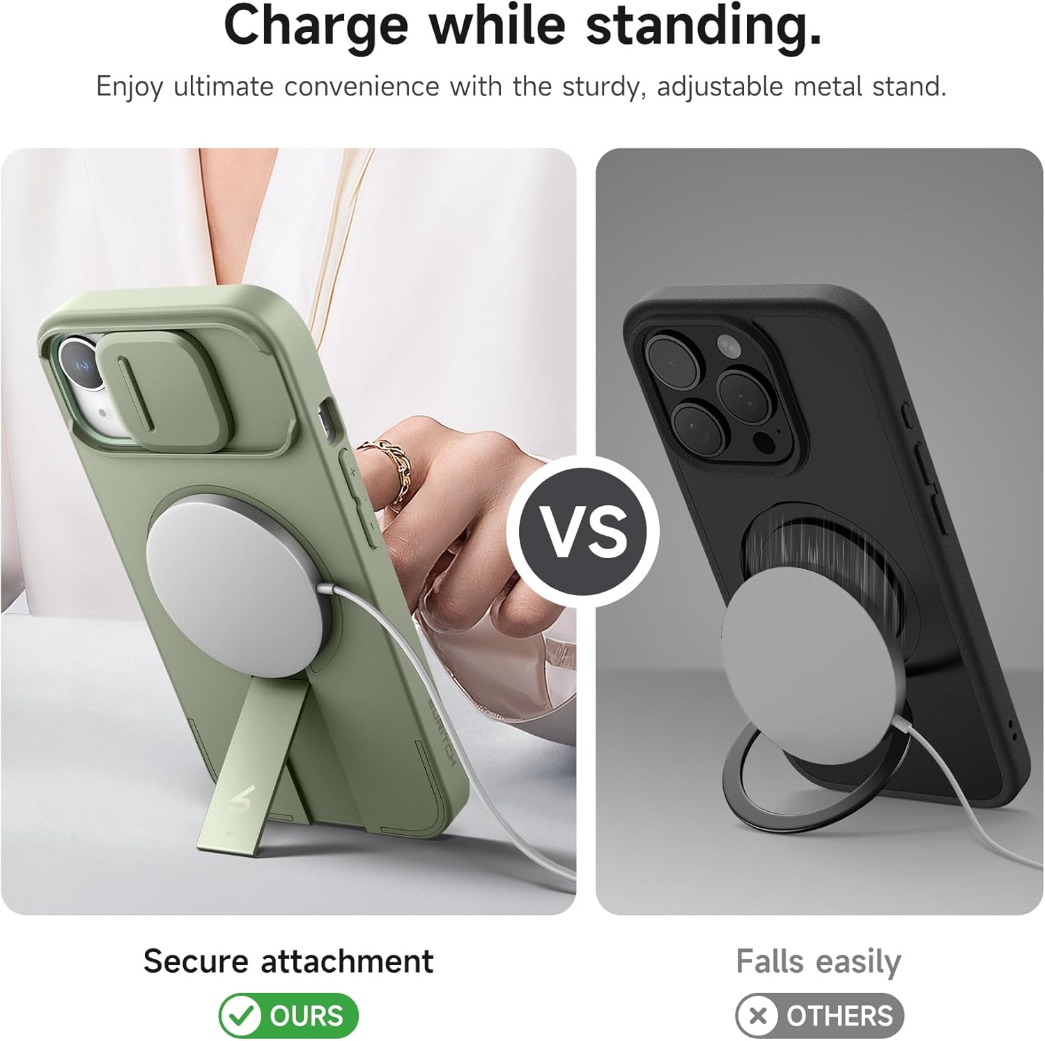 SURITCH for iPhone 15 Case with Magnetic Camera Slide Cover and Adjustable Kickstand, Compatible with MagSafe, Shockproof Bumper Case Slim Protective Cover 6.1 Inch, Green