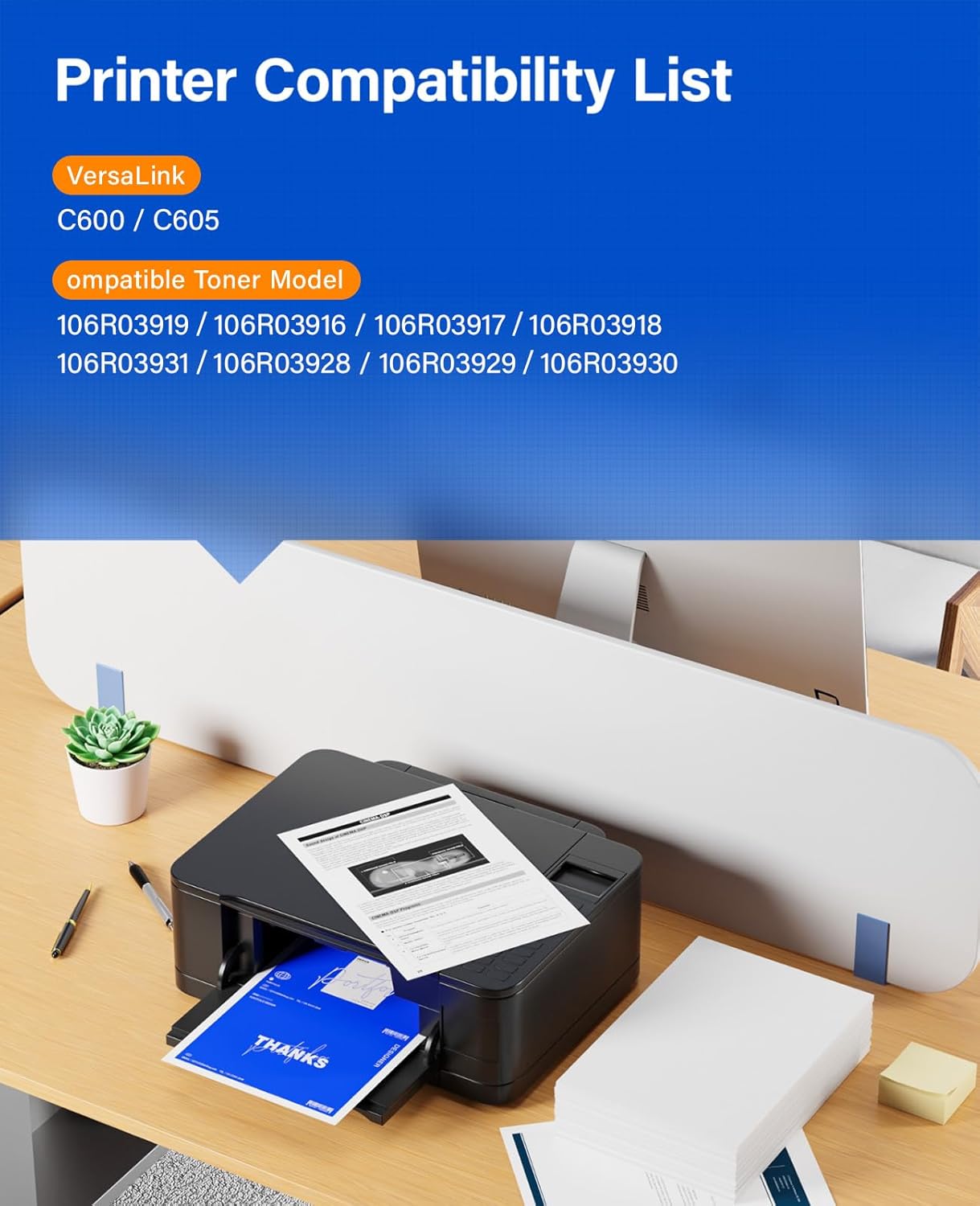 - Compatible Printer: Xerox VersaLink C600 C605 Printer Series; Compatible Toner Model:106R03919,106R03916, 106R03917,106R03918,106R03931,106R03928,106R03929,106R03930