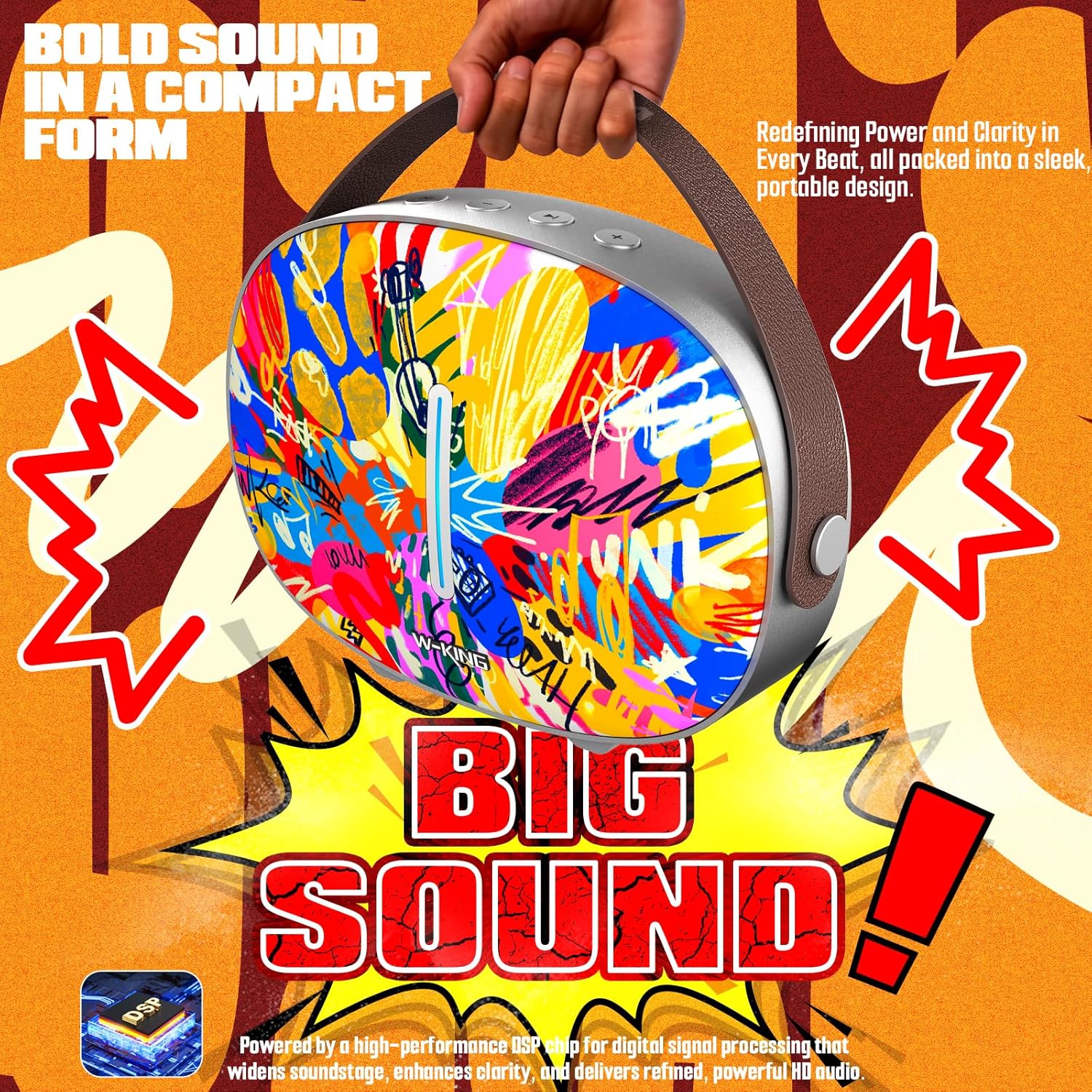 - PERSONALISED TRENDY DESIGN: T8II outdoor speaker offers 3 avant-garde color options: classic black, cool MUSIC edition and a graffiti style full of personality. These choices help create a unique music identity while meeting diverse aesthetic and personal expression needs. The speaker’s body combines a metal frame with premium fabric, featuring refined craftsmanship, a lychee-textured leather handle, and non-slip foot pads—ensuring portability, comfort, and a balance of quality and practicality.