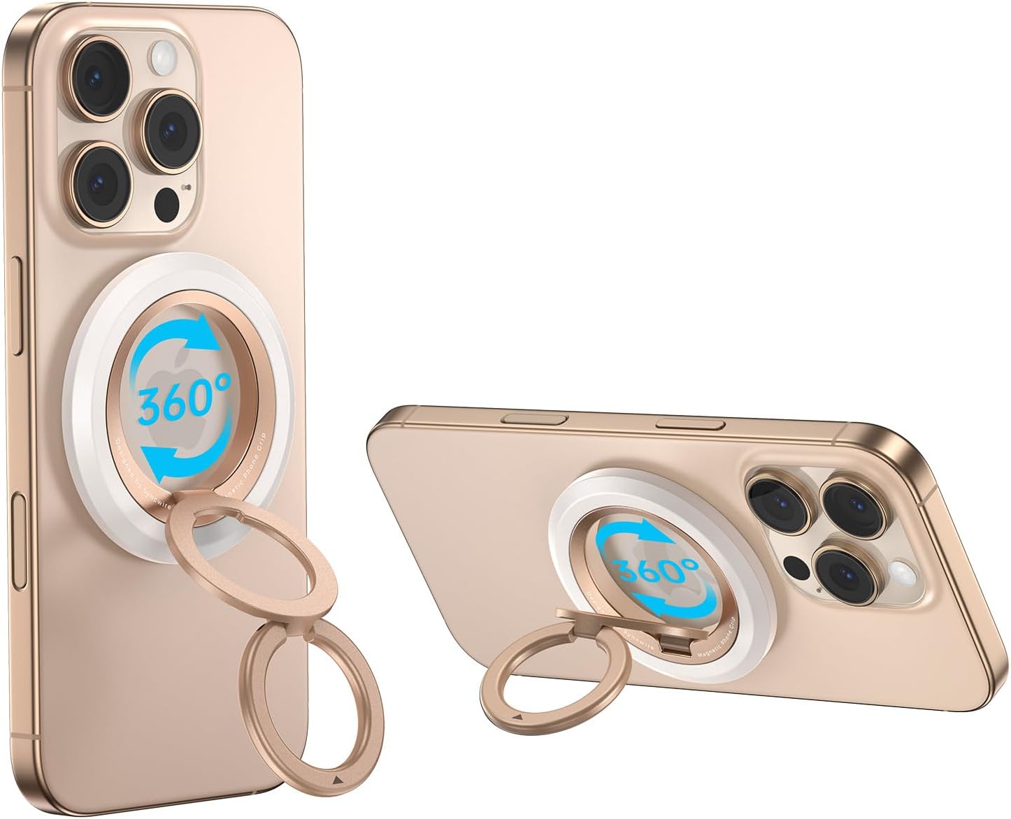 SYNCWIRE Magnetic Phone Ring Holder for MagSafe, 360° Rotation Dual Sided Magnet Grip Cell Phone Ring Stand Finger Kickstand Compatible with iPhone 16 15 14 13 12 Pro Max fits MagSafe - Pearl Gold