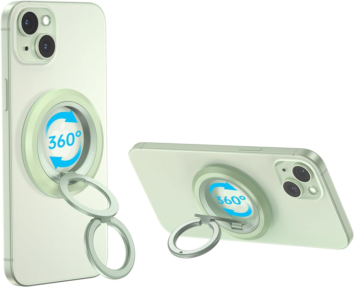 SYNCWIRE Magnetic Phone Ring Holder for MagSafe, 360° Rotation Dual Sided Magnet Grip Cell Phone Ring Stand Finger Kickstand Compatible with iPhone 16 15 14 13 12 Pro Max fits MagSafe - Green
