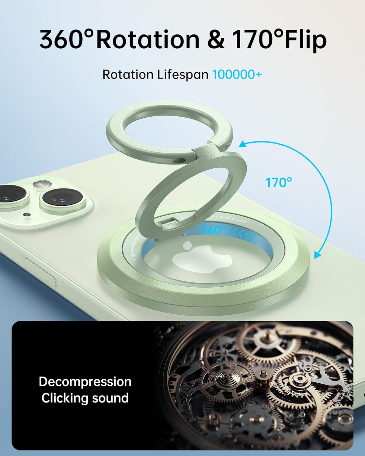 - 【360° Rotatable & 170° Foldable Design】 The dual-ring design allows for multi-angle adjustments to meet different usage needs. The stable hinge lock system is perfect for office video calls, selfies, and media streaming. This magnetic phone ring holder has been tested to withstand over 6000 folds without loosening, significantly improving its durability.