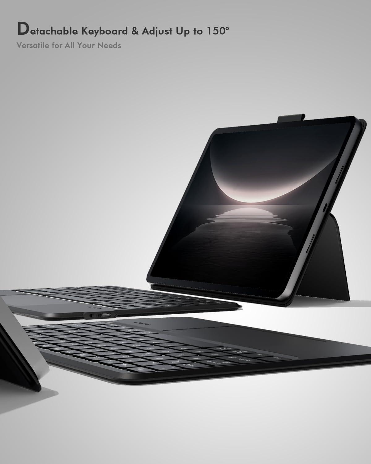 - Multi-Angle Adjustable Stand: Detachable keyboard with strong magnetic snap-on for flexible typing positions. The any-angle stand helps you different stands for typing, viewing, or drawing.
