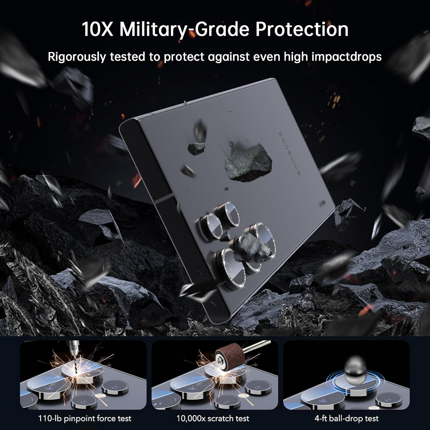 - 10x enhanced protection Made from 9H durometer sapphire coated tempered glass and aircraft aluminum alloy, each individual lens cap is strong but not bulky, providing 10x enhanced protection for the S25 Ultra camera against scratches and drops. It keeps your camera safe even during high-impact drops and is also highly resistant to scratches from everyday hard and sharp objects.