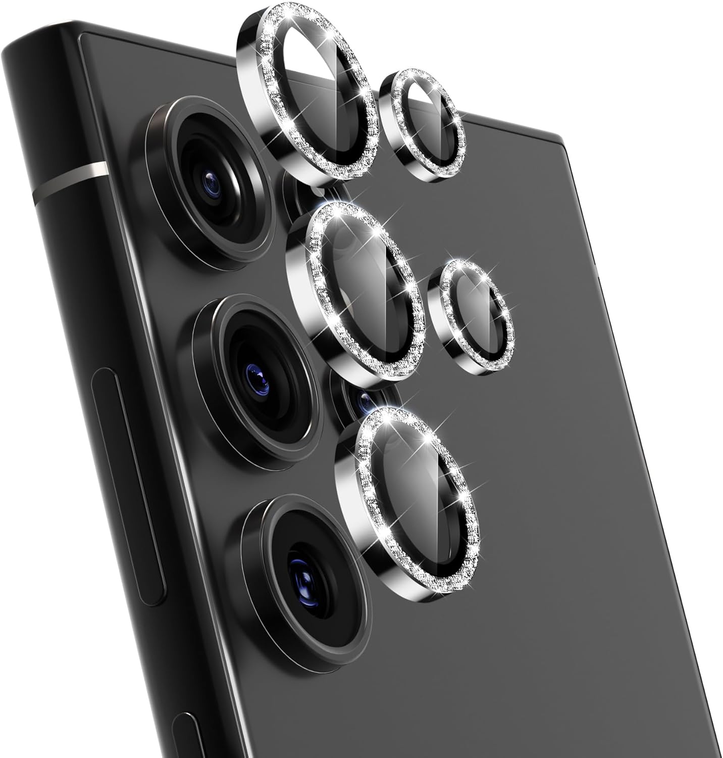 For Samsung Galaxy S25 Ultra Camera Lens Protector, Individual Lens Protector, Ultra HD 9H Tempered Glass Screen Protective Cover, Anti-scratch, Military Grade Drop Protection 2 Set. (Glitter Silver, S25 Ultra)