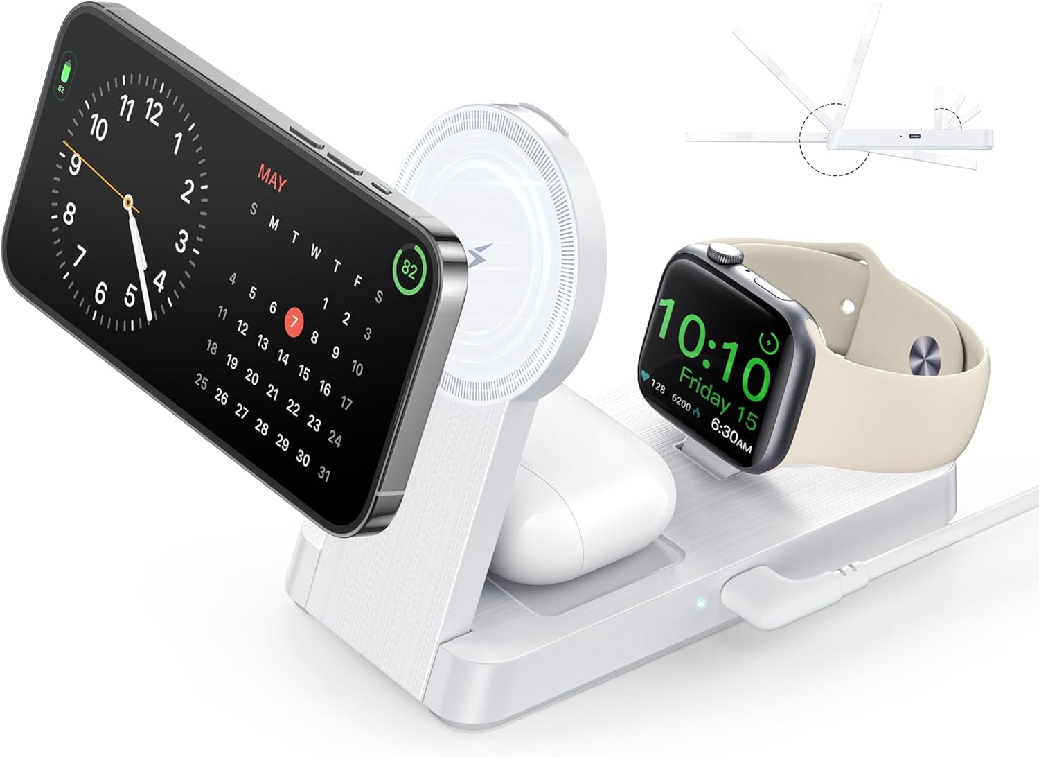 - 3 in 1 Wireless Magnetic Charger Fast Charging: 1> Fast Charging Charger For iPhone 12-16 (Compatible MagSafe ) & Apple Watch Series 2-10/SE & AirPods Pro 2/3/4 Wirelessly. 2> Strong magnetic alignment ensures perfect charging position for iPhone.