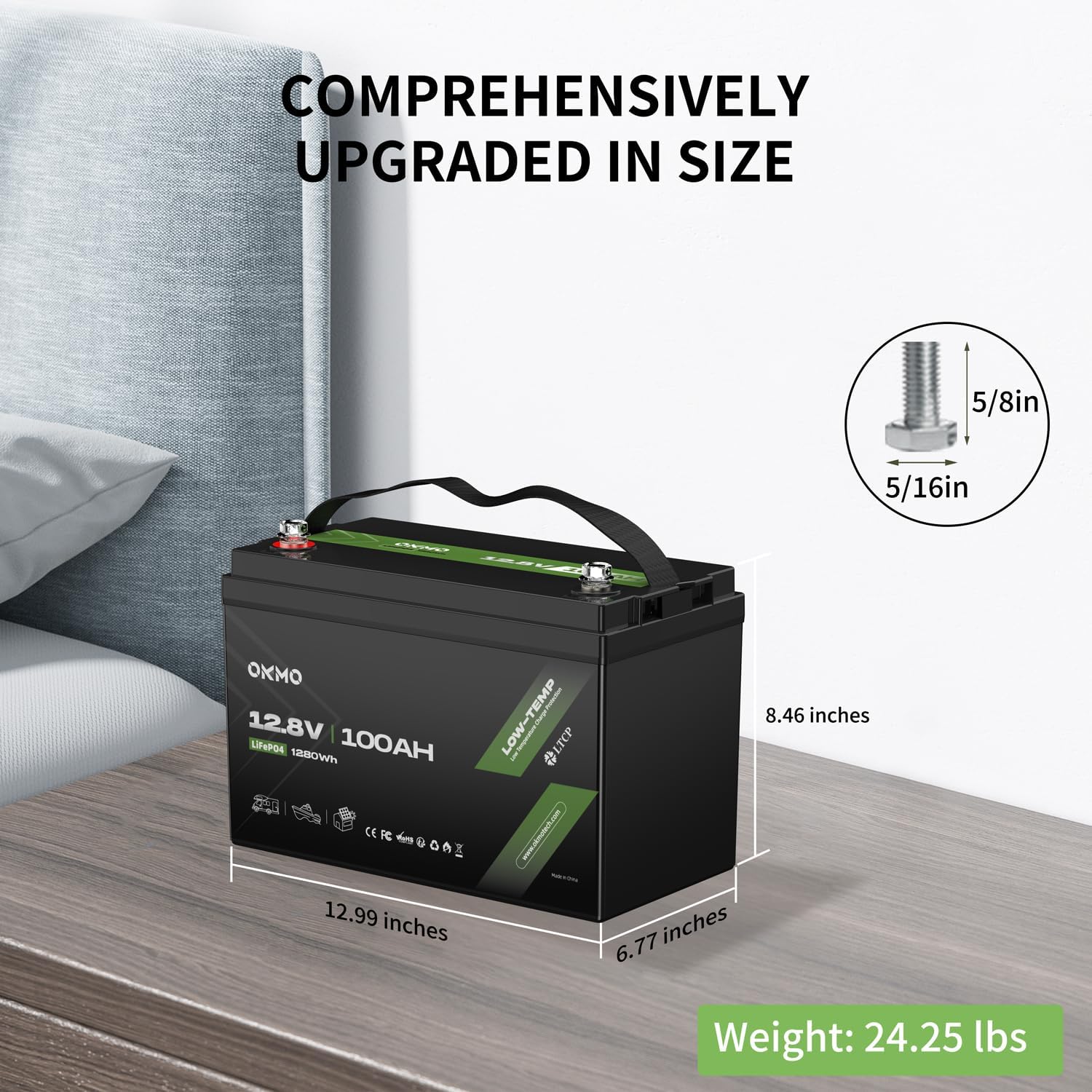 12V 100Ah LiFePO4 Lithium Battery, Built-in 100A BMS with Low-Temp Protection, 15000+ Deep Cycles & 1280Wh Energy for RV, Solar, Marine, Trolling Motor, Home Storage
