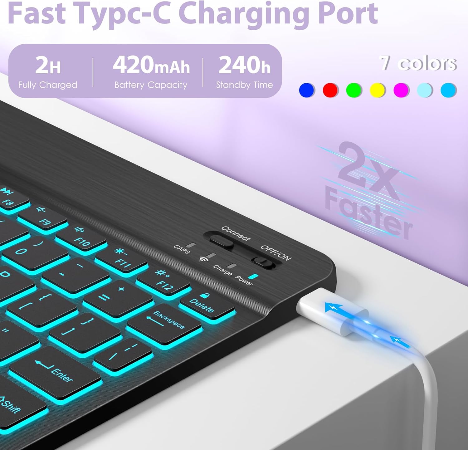 - 【7 Colors Backlit Keyboard】The backlit buttons with laser etching allow 7 bright colors to shine in the dark, allowing you to type comfortably in the dark. Ergonomic and mechanical scissor keys with rebound feature to reduce noise