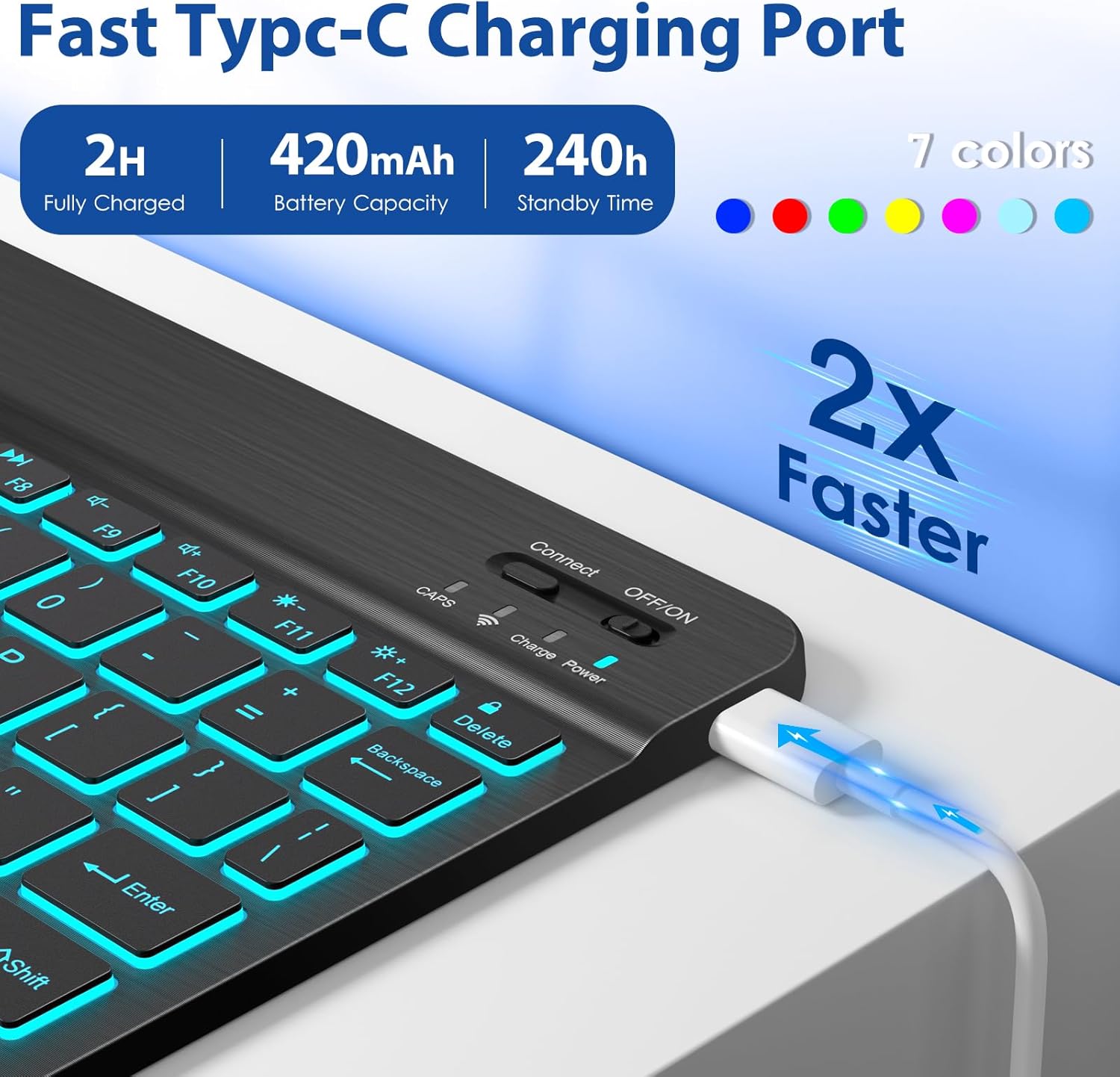 - 【7 Colors Backlit Keyboard】The backlit buttons with laser etching allow 7 bright colors to shine in the dark, allowing you to type comfortably in the dark. Ergonomic and mechanical scissor keys with rebound feature to reduce noise
