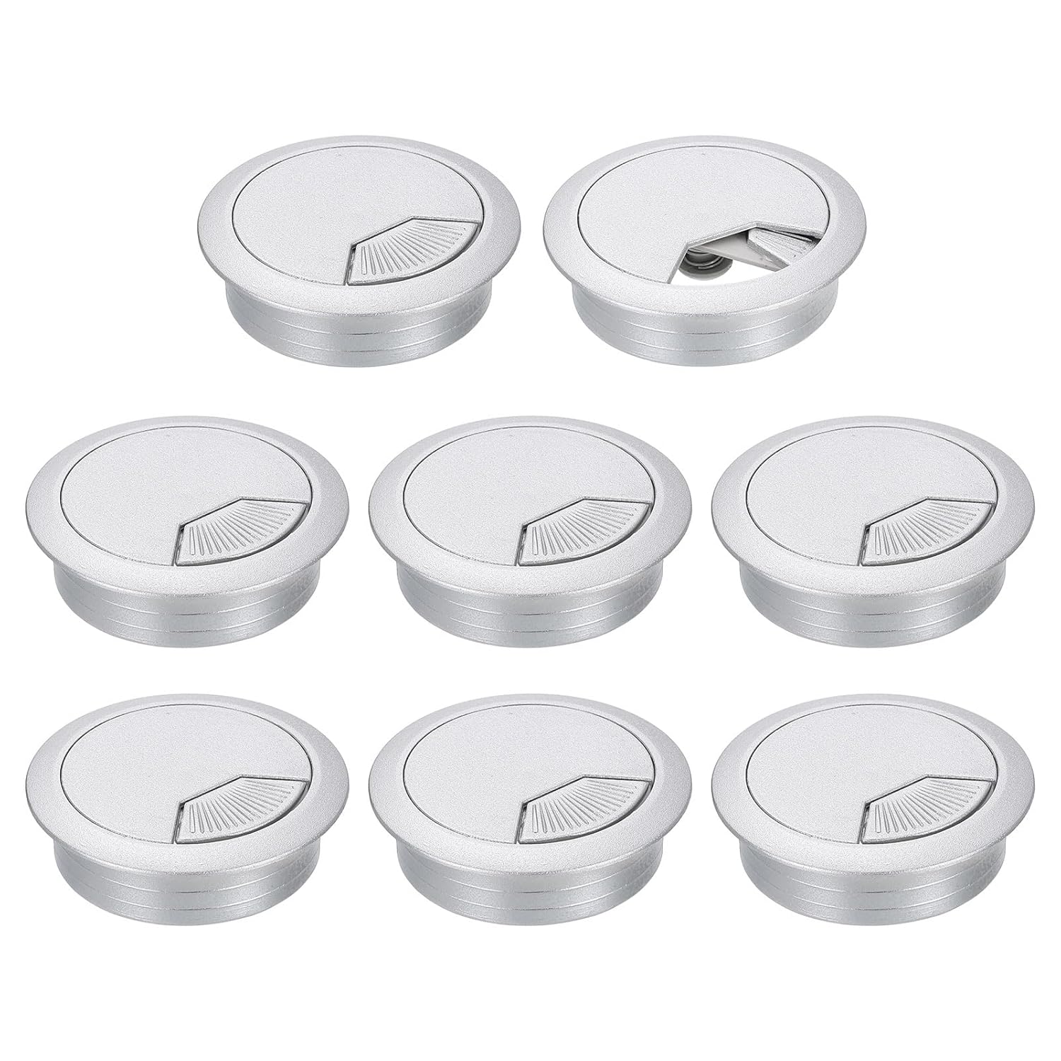uxcell 8 Pcs 53mm (2.09 Inch) Desk Grommet, Plastic Cable Hole Cover, Wire Cord Cable Organizer for Home Office Computer Desk Cabinet, Silver