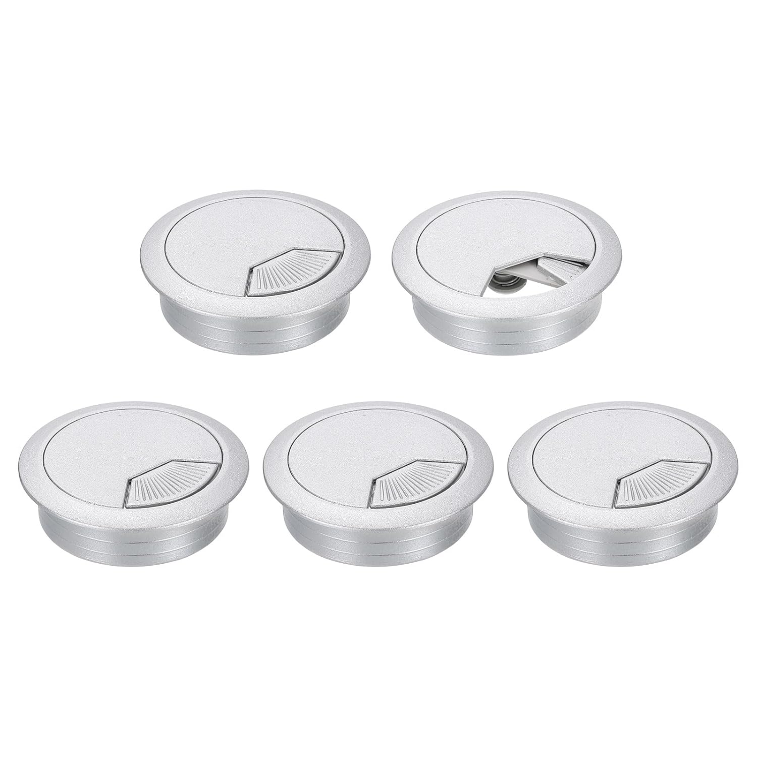 uxcell 5 Pcs 53mm (2.09 Inch) Desk Grommet, Plastic Cable Hole Cover, Wire Cord Cable Organizer for Home Office Computer Desk Cabinet, Silver