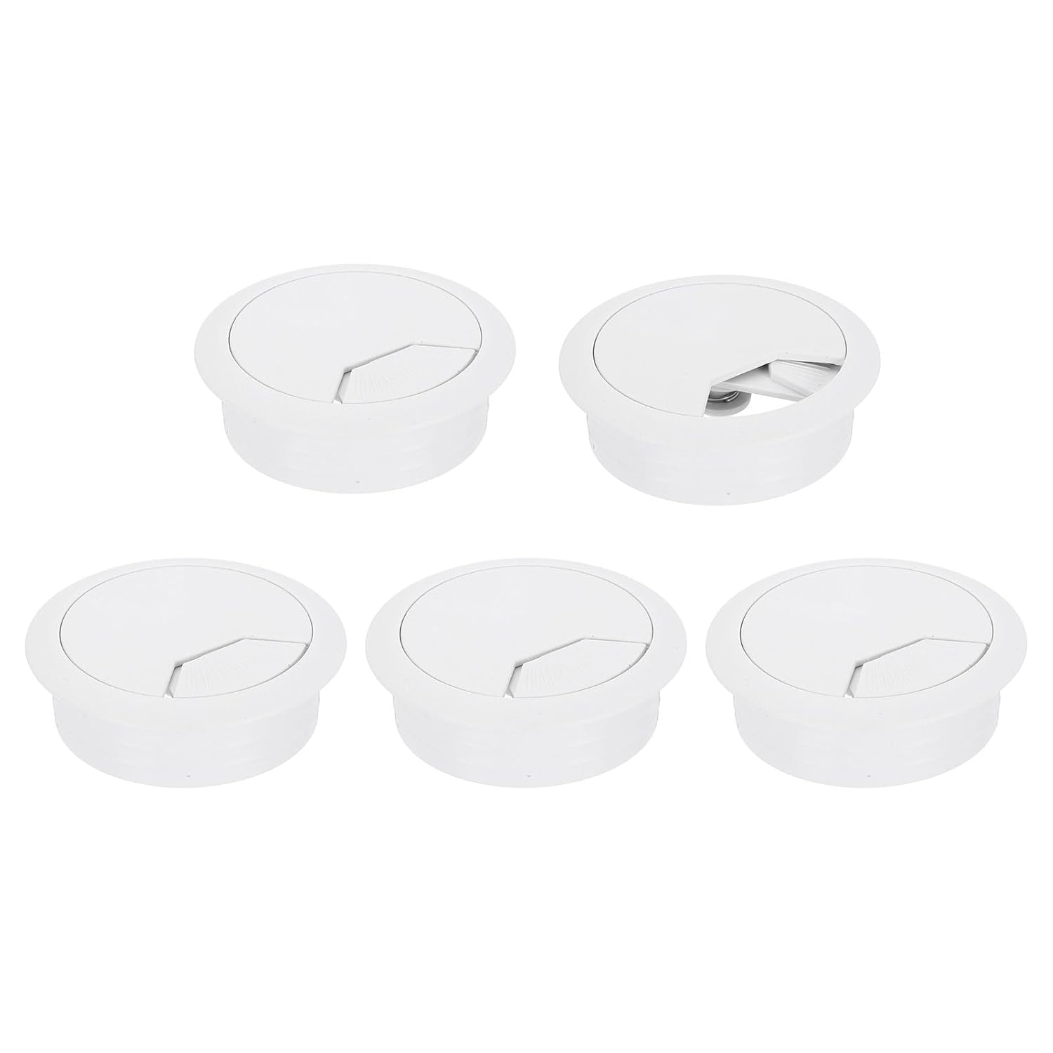 uxcell 5 Pcs 50mm (1.97 Inch) Desk Grommet, Plastic Cable Hole Cover, Wire Cord Cable Organizer for Home Office Computer Desk Cabinet, White