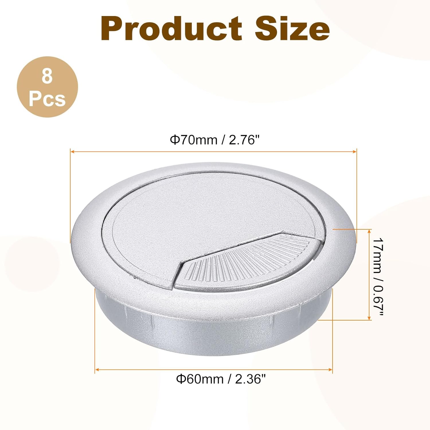 uxcell 8 Pcs 60mm (2.36 Inch) Desk Grommet, Plastic Cable Hole Cover, Wire Cord Cable Organizer for Home Office Computer Desk Cabinet, Silver