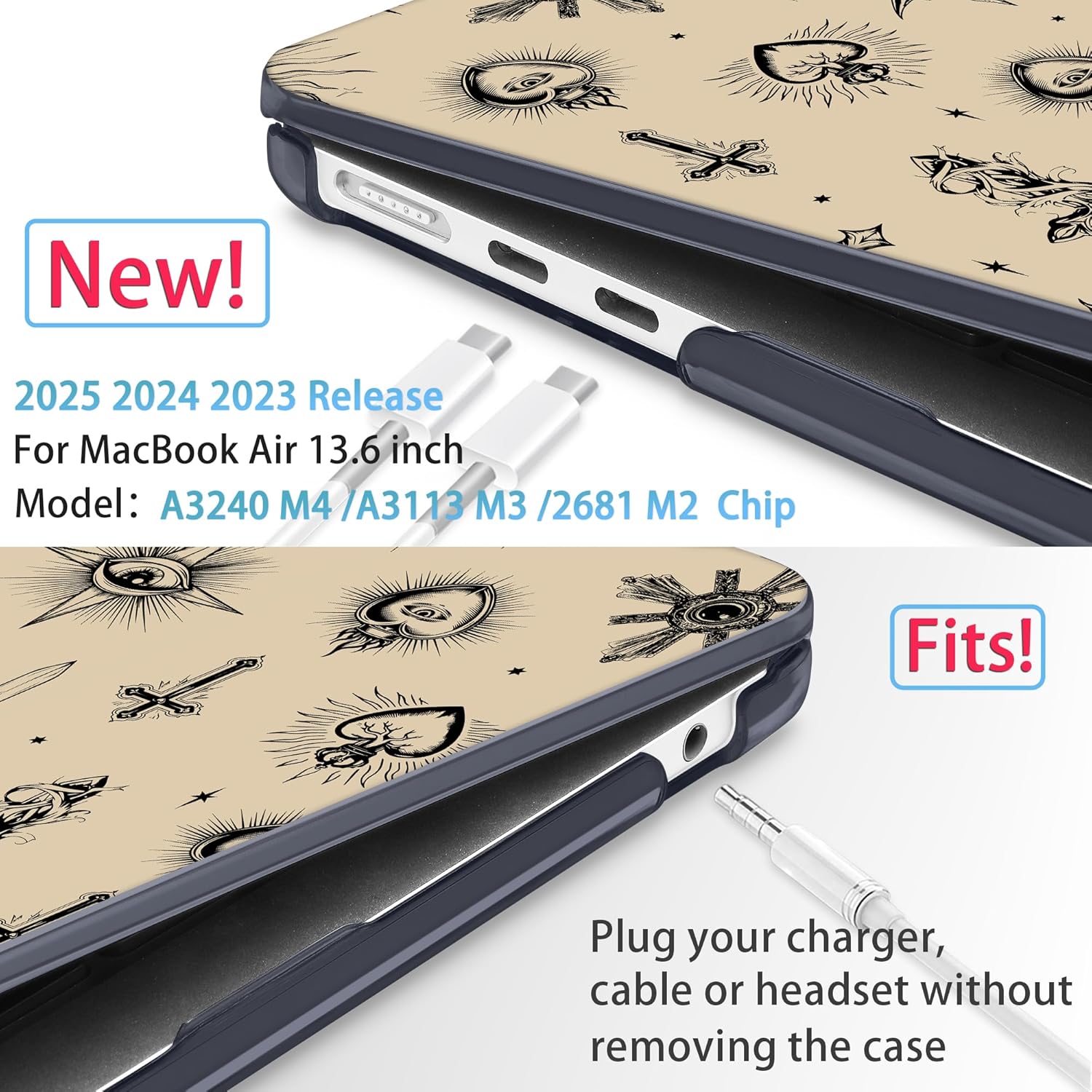 Mektron for 2025 M4 MacBook Air 13.6 Inch A3240 Case Fits 2023 A2681 M2 2024 A3113 M3 Chip with Liquid Retina Display Touch ID, Printed Plastic Hard Shell Cover for MacBook Air 13.6", Evil Eye