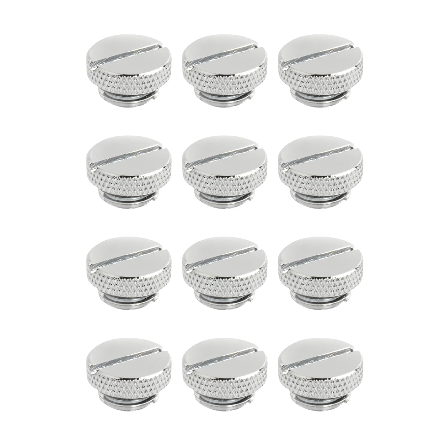 Dracaena.io 12 Pack G1/4" Thread, Thin Water Stop Plug Fitting with Coin Slot for Computer Water Cooling System, Durable Brass/Copper Material, Silver