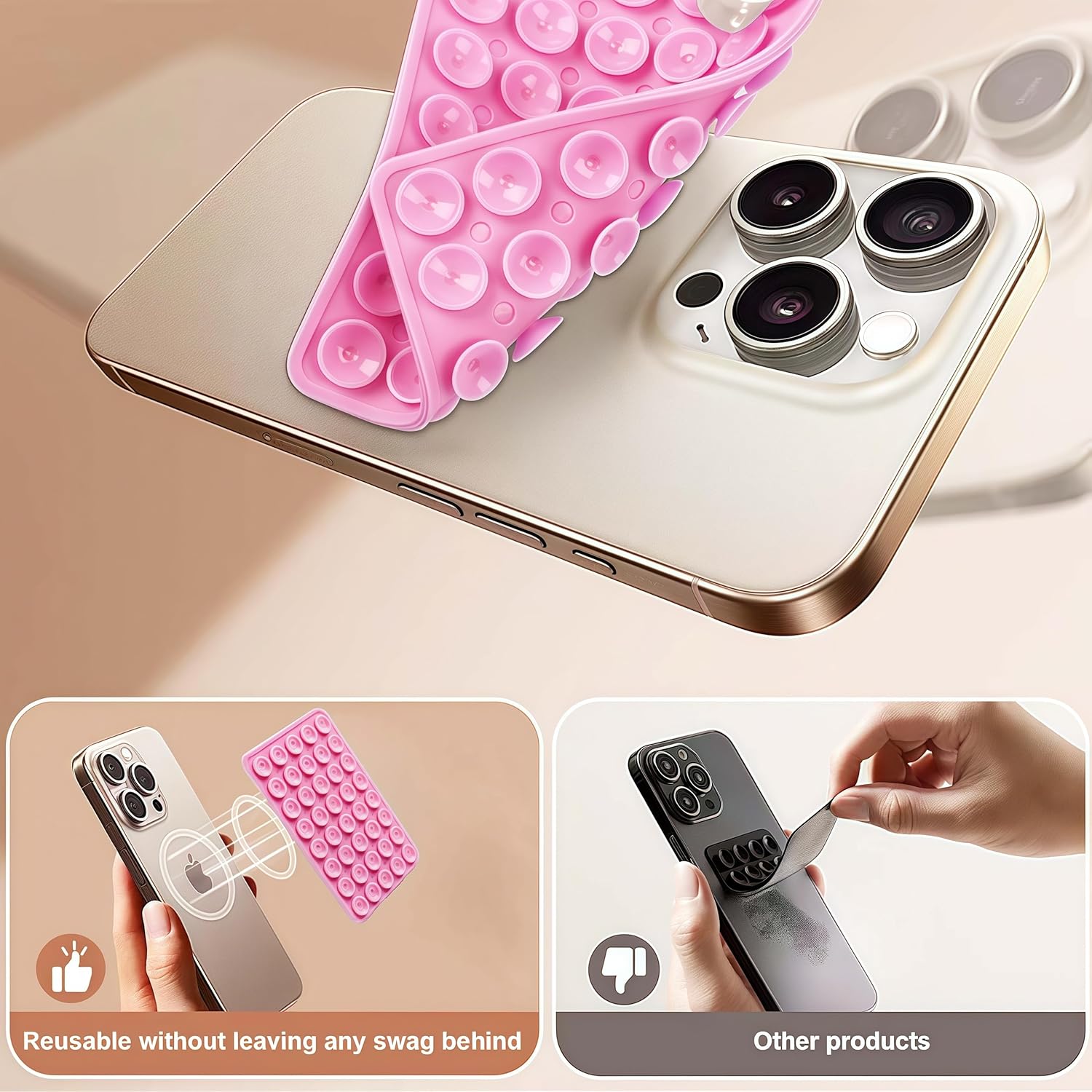 - ⭕【Strong Adsorption】:The suction power of the phone suction mount is very strong, it has 24 independent suction cups on each side, providing stronger and stable adhesion, you don't have to worry about your phone falling off. Unlike the single-sided suction cups that are attached to the phone case on the market and be removed, our double-sided suction cups can be removed and used at any time, which is more convenient.