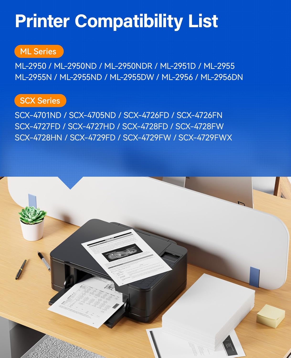 - Compatible Printer: Compatible with Samsung ML-2950, ML-2950ND, ML-2950NDR, ML-2951D, ML-2955, ML-2955N, ML-2955ND, ML-2955DW, ML-2956, ML-2956DN, SCX-4701ND, SCX-4705ND, SCX-4726FD, SCX-4726FN, SCX-4727FD, SCX-4727HD, SCX-4728FD, SCX-4728FW, SCX-4728HN, SCX-4729FD, SCX-4729FW, SCX-4729FWX Series Printers.