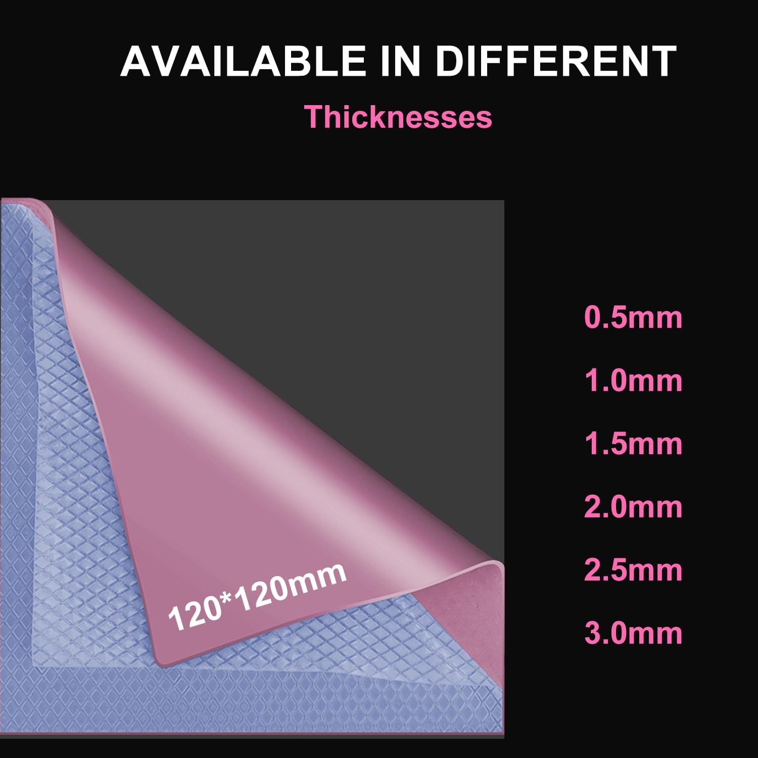 - Convenient & Affordable: Dimension 120x120x3.0mm, these thermal pads can be cut freely according to your needs. one pieces of 0.5mm/set can meet different needs.
