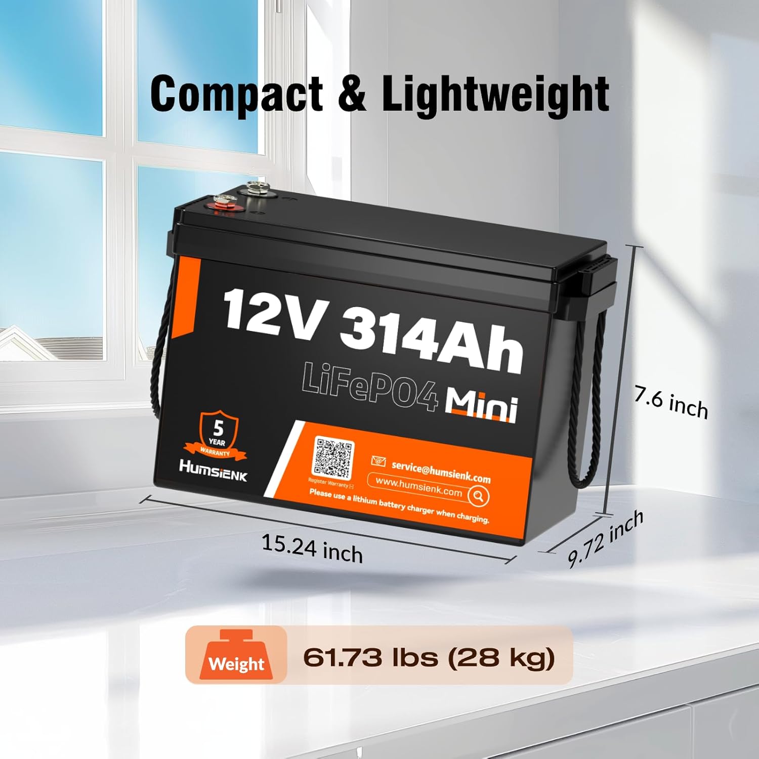 - 【4.19kWh & 15,000+ Deep Cycles】Our 12.8V 314Ah LiFePO4 battery (2 PACK) offers an impressive 15,000+ deep cycles, lasting 30 times longer than traditional 300Ah lead-acid batteries. Fully charged, the LiFePO4 battery delivers 4.19kWh of energy with nearly 100% depth of discharge (DOD), ensuring reliable power for your devices.