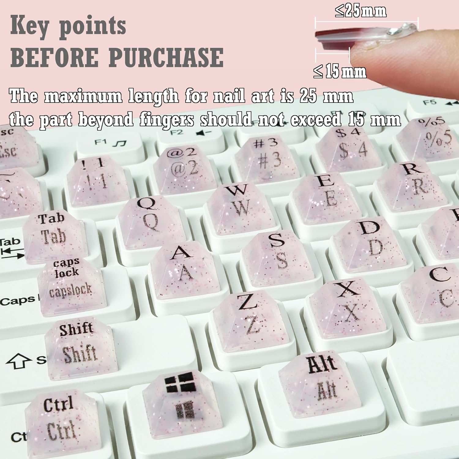 80 Pcs Keyboard Sticker for Long Nails Typing and Gaming, Symbolic and Alphanumeric Sticky Silicone Keys for Keyboards and Laptop (Sparkly Pink)