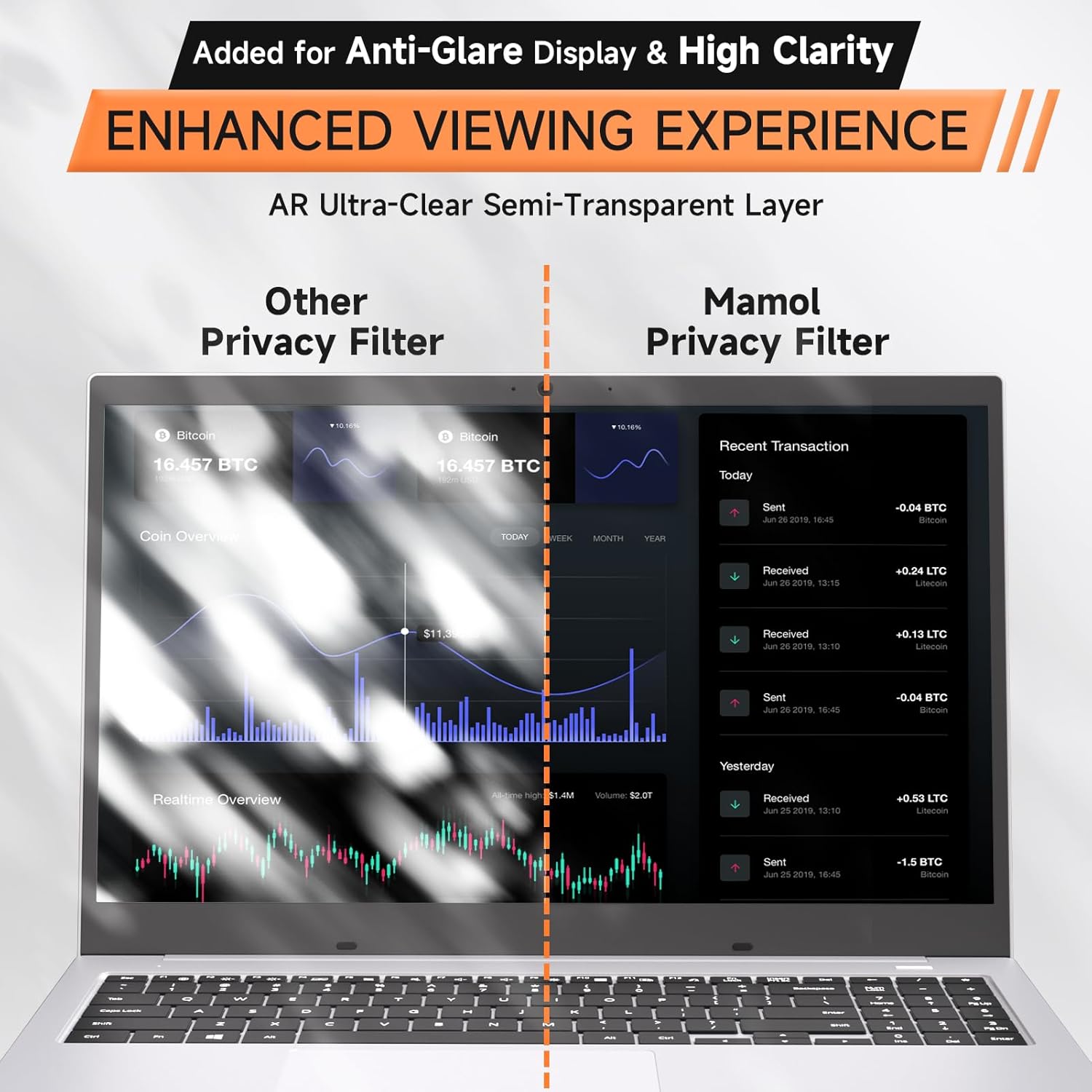 - 【Better HD Clartiy】Mamol 14 inch computer privacy screen Shield adds an extra layer of AR Ultra HD light transmission compared to others. It maintains the high definition of the screen without sacrificing too much screen brightness. It won't reduce the brightness and cause eye fatigue because of the privacy screen installed on the screen.