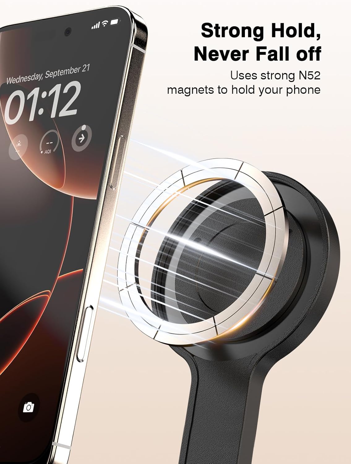 - π§²γππππππ ππππππππγThe travel tripod for iphone uses strong N52 magnets to hold your phone firmly in place, even when adjusting angles or shooting in motion. Whether you're taking selfies on travels, vlogging outdoors, live streaming, or taking group photos, your phone will be securely attached to the magnetic selfie stick tripod.