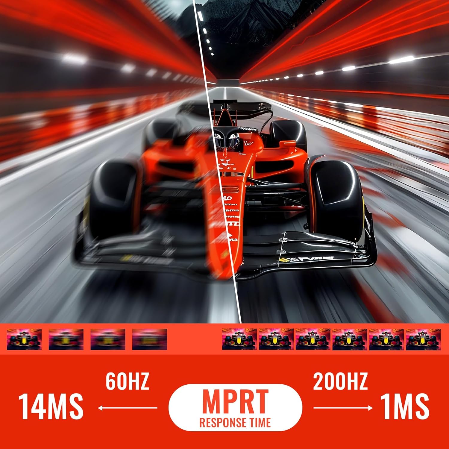 - Smooth Gaming - 200Hz & 1ms MPRT response time, FreeSync technology; CrossHair /Timer /RTS /FPS /RACING game assistants
