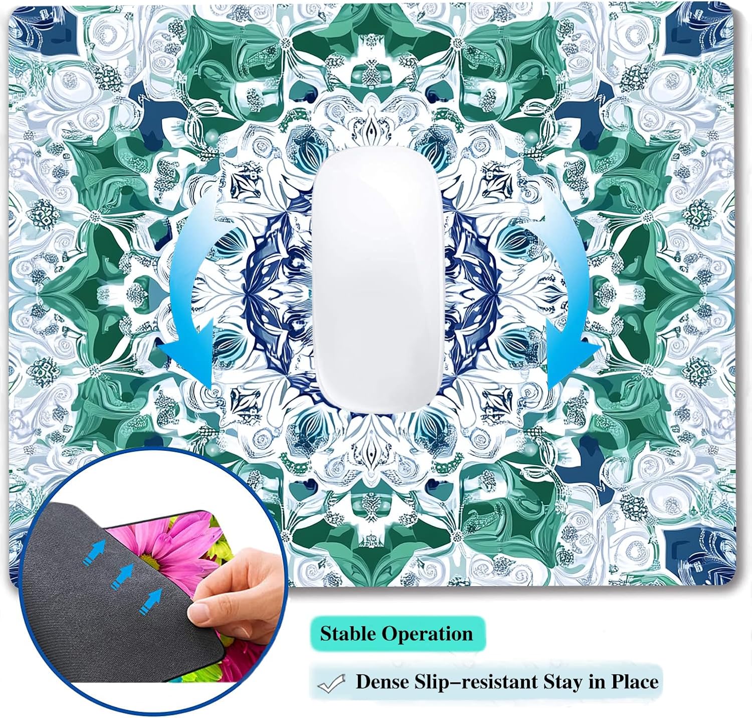 Aesthetic Mandala Pattern Custom Mouse Pad with Non-Slip Rubber, Small Square Design for Wireless Laptop & Computer Mouse Pads for Desk, 9.5 x 7.9 inch Smooth Surface for Gaming & Office