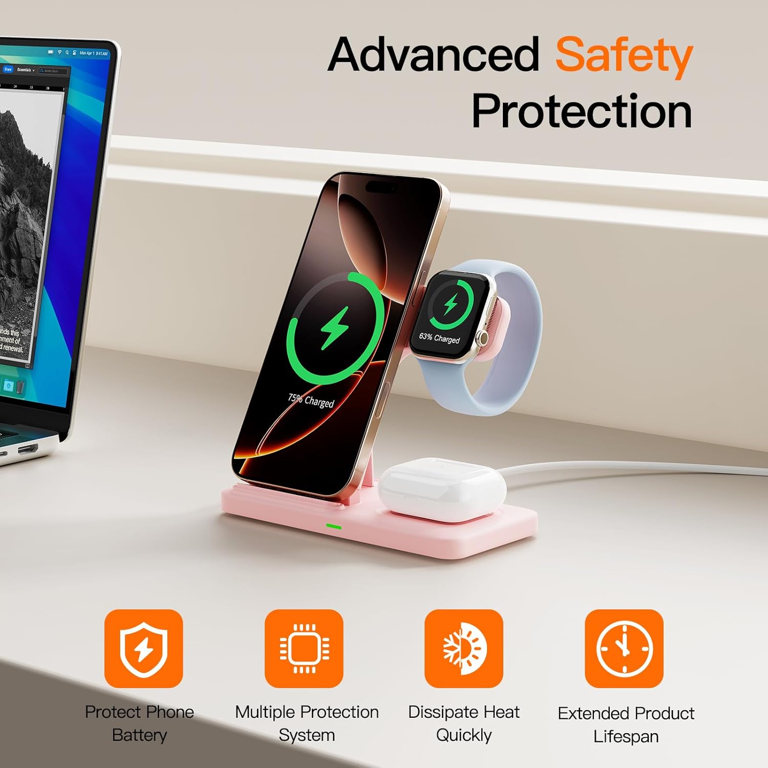 - 【Portable Folding Design】: Apple charging station with foldable and lightweight design, can charge up to 3 devices at the same time, non-slip surface ensures that your device stays in place during charging, ideal for home, office, travelling, it provides fast and reliable power supply, easy to put in your bag, i Phone wireless charger say goodbye to clutter and hello to efficiency. A thoughtful gift for your loved ones/friends