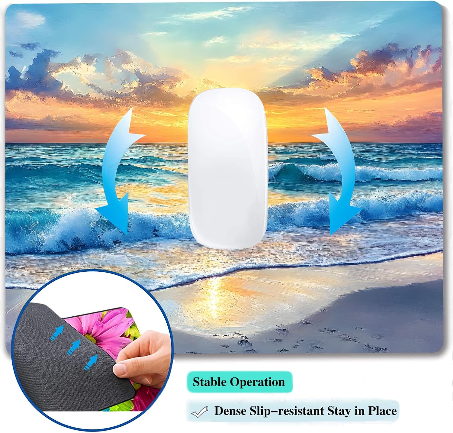 Aesthetic Sunrise Sunset Beach Custom Mouse Pad with Non-Slip Rubber, Small Square Design for Wireless Laptop & Computer Mouse Pads for Desk, 9.5 x 7.9 inch Smooth Surface for Gaming & Office