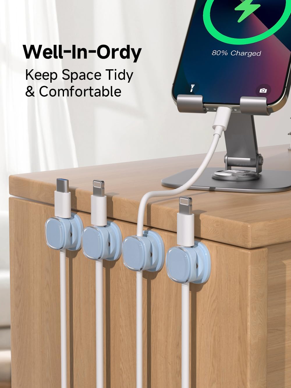 - Hold Most Cords: Diameter of about 0.3 inch (7.5mm) allows to hold most cords, such as Type-C charger cords, lightning cords, HDMI cords, USB cables, PC Notebook power wires, network wires, mouse cords, keyboard cables, headphone cords