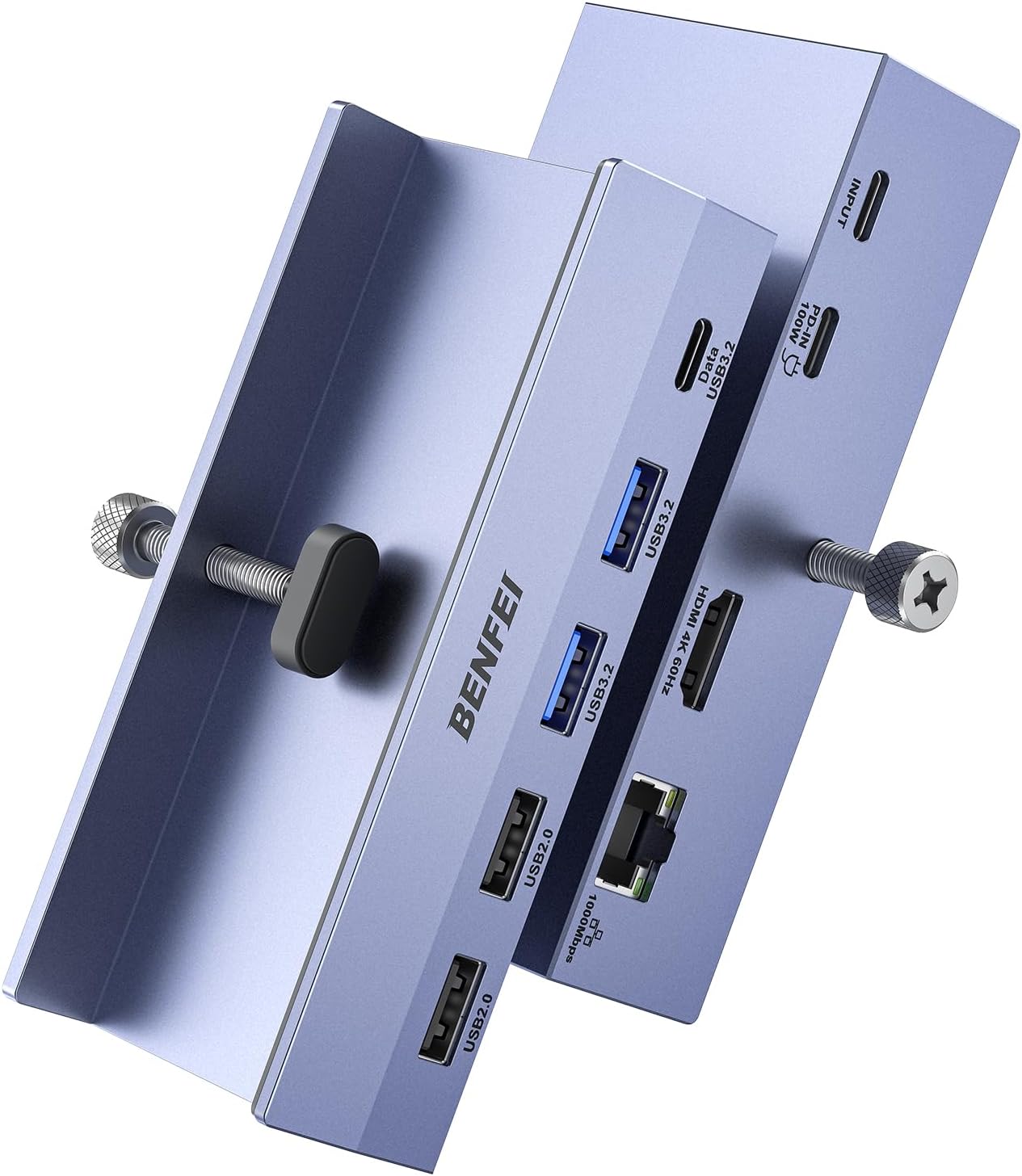 - 【New Clampable Hub Design】BENFEI USB C Hub designed with adjustable screw allow you to mount monitor screen edge or desk edge thickness from 0.19 to 1.41 inches (5-36mm), without occupying much space and keeping your desk top neat. The fix Hub is easy installation and sturdy and rubber cover on the screw can protect monitor's finish.