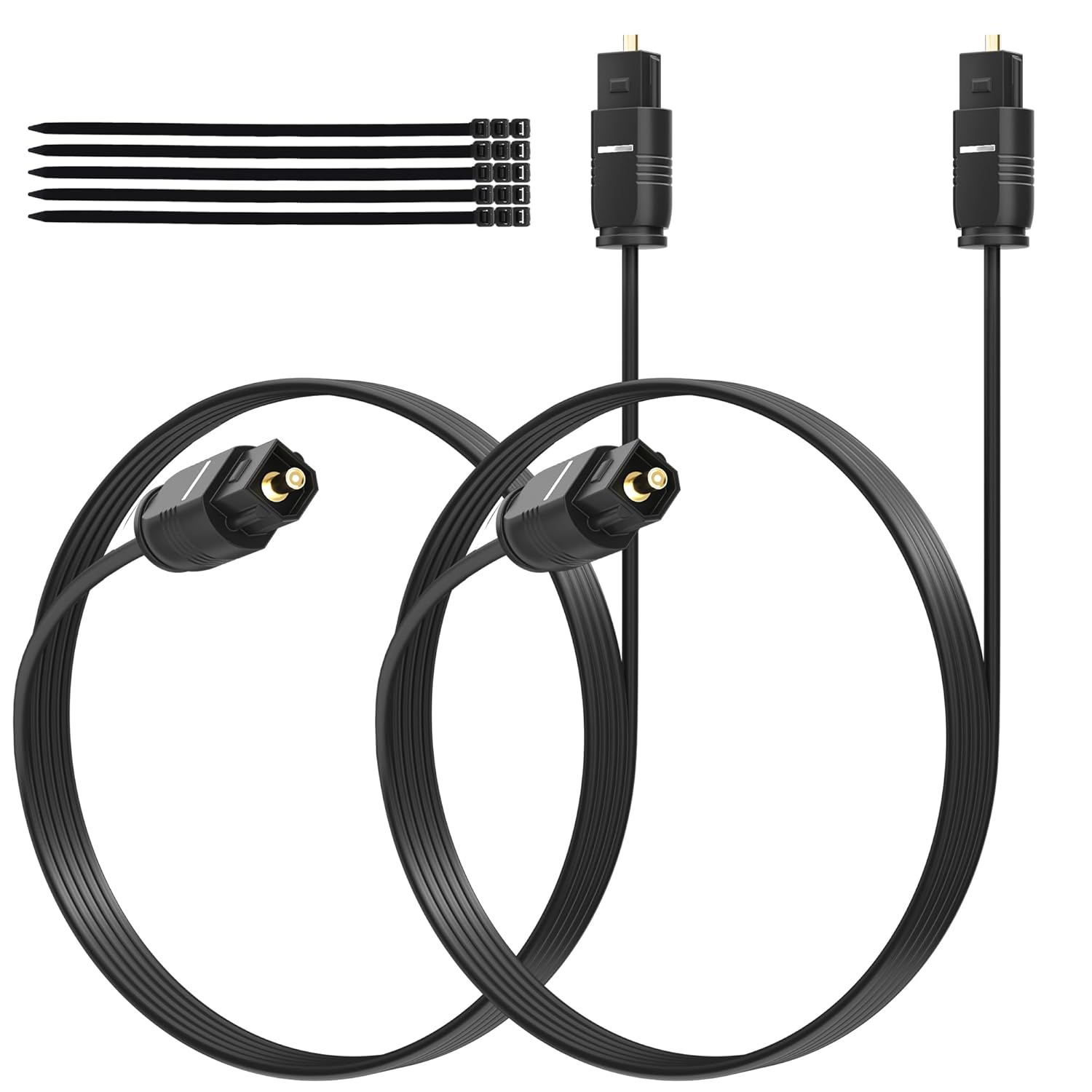 Adoreen Ultra-Thin Slim Digital Optical Audio Cable 4 FT/2 Pack, Fiber Optic Toslink SPDIF Cord Gold-Plated High-Speed Flexible & Durable for TV Soundbar Home Theater Game Console PS4 Xbox +Ties