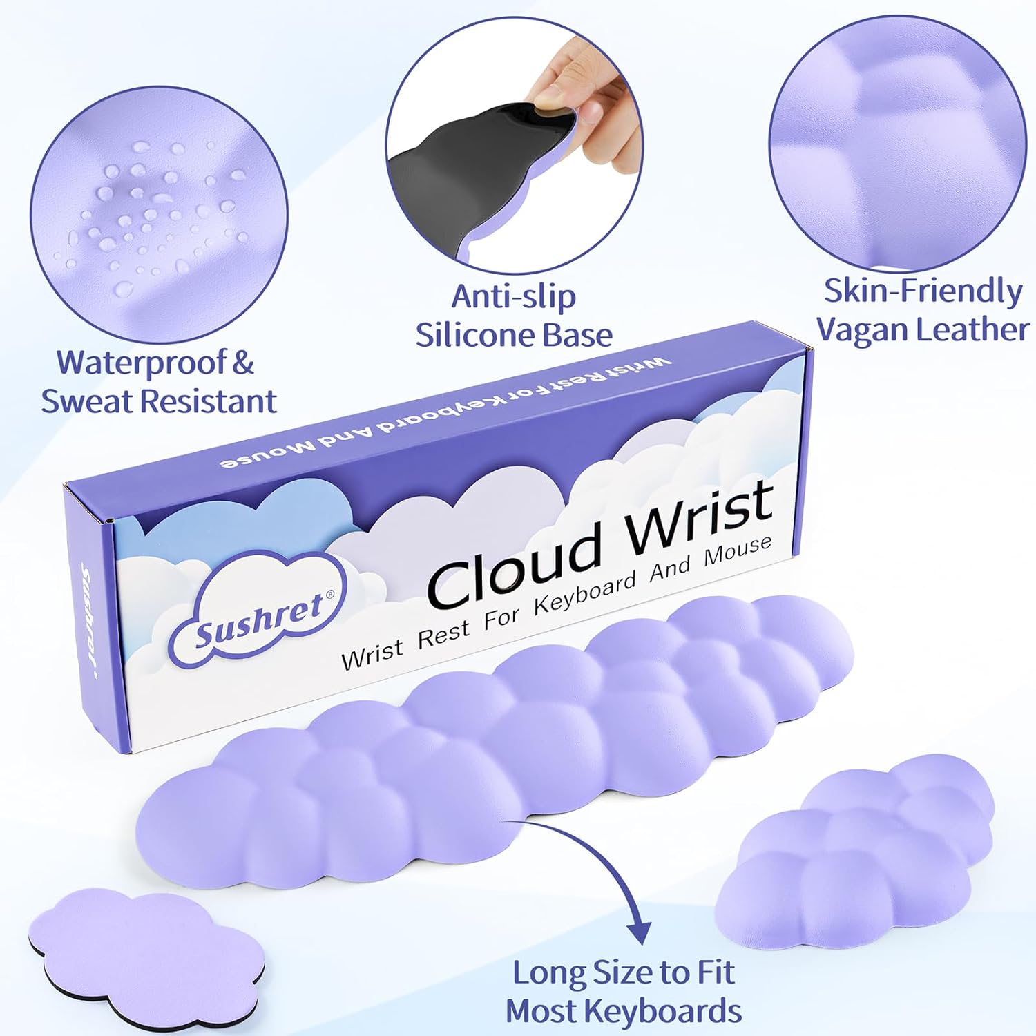 - Waterproof and Anti-slip: Made of water-resistant and sweat-proof vegan leather, easy to clean. The anti-slip base is made of silicone, which is non-toxic, chemical-free and safe to use. Provides a firm grip to keep the keyboard wrist rest firmly fixed on your desk. This keyboard cloud wrist rest can help you relax while studying, working or playing games