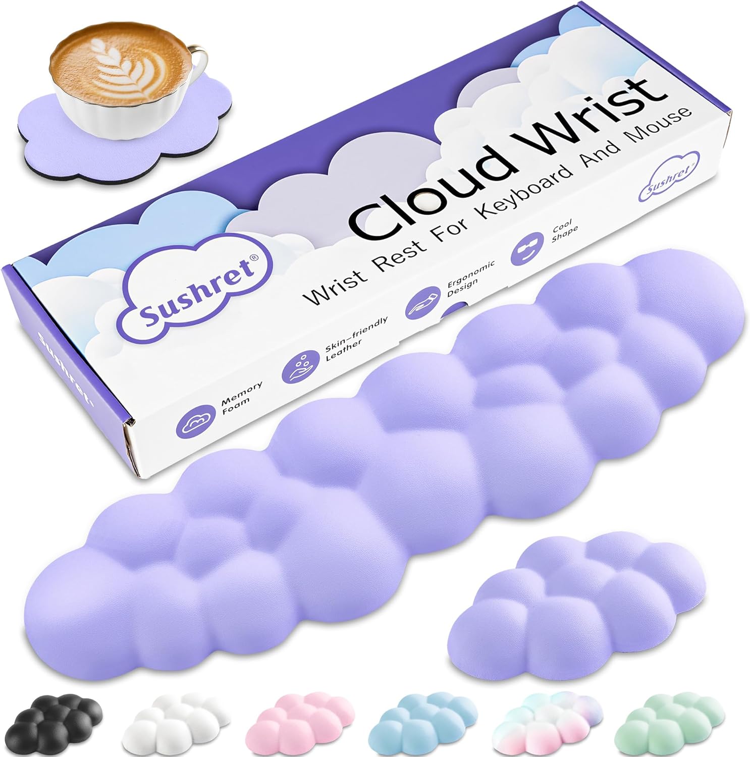 Cloud Wrist Rest Keyboard, Cloud Keyboard Wrist Pad Set with PU Leather Memory Foam, Cute Arm Rest for Palm Support, PC/Gaming Desk Accessories/Office Setup/Computer Hand Cushion - Purple