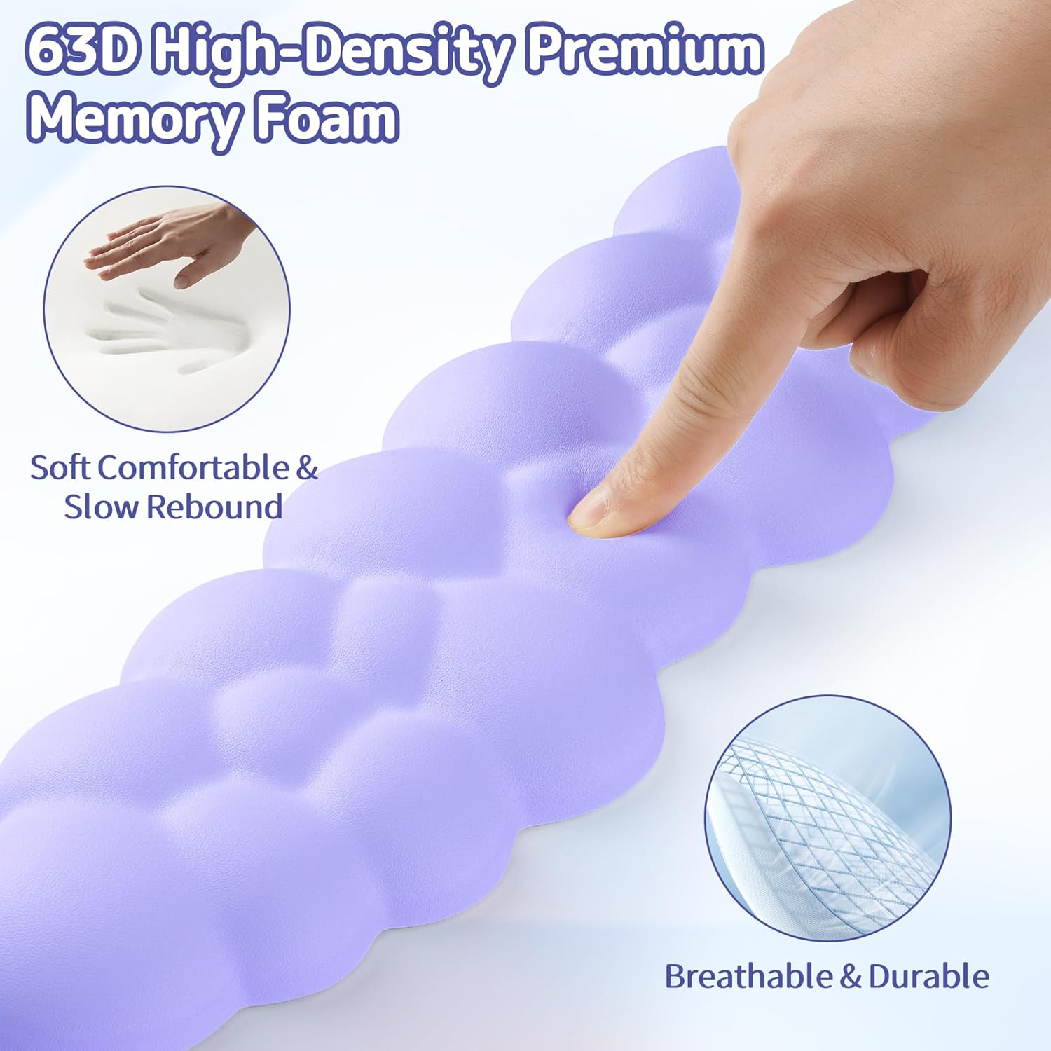 - Cloud Soft Comfort: Premium 63D high-density memory foam and new soft breathable leather fabric, fits the skin and is super comfortable. This cute and squishy cloud keyboard pad with wrist support is durable and contoured perfectly for you. It is a perfect desktop companion for gaming and office