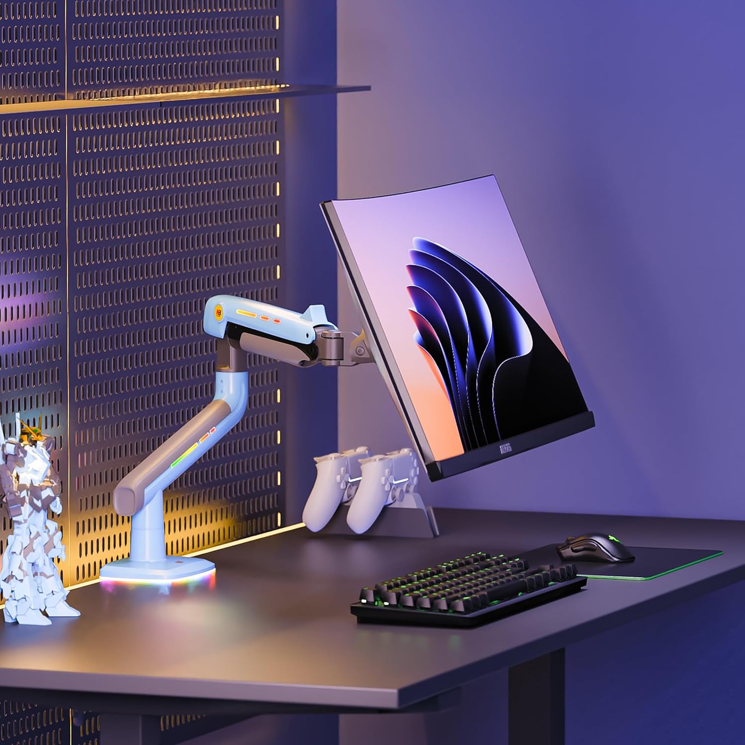 Gaming Monitor Arm for Flat/Ultrawide/Curved Monitors 32 to 60 inch, Heavy Duty Monitor Stand Load up to 20 kg, VESA 75/100 mm Mount (Gulf Blue)