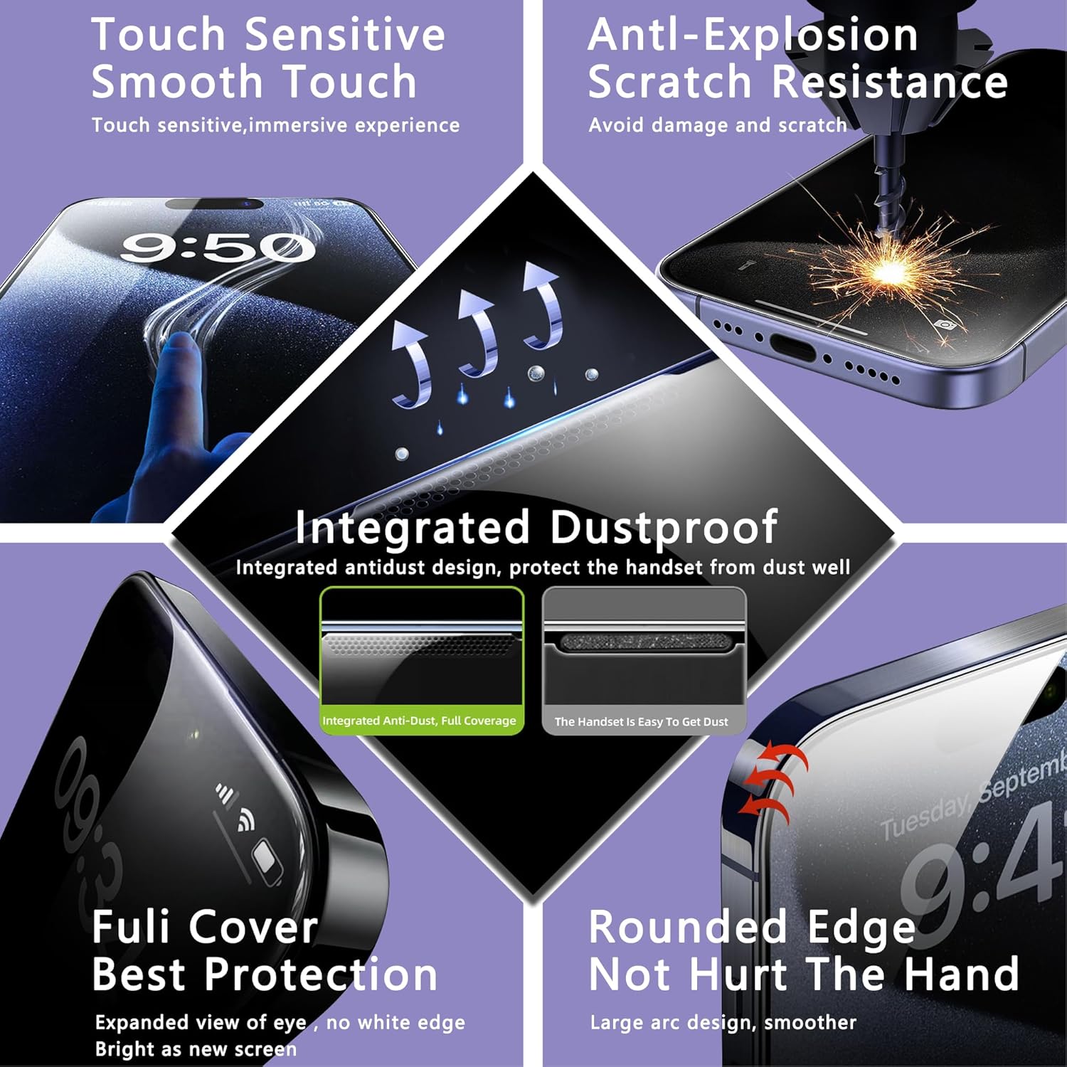 - 9H Hardness Tempered Glass Protection : Crafted from durable,high-strength tempered glass,it resists scratches,impacts,and drops. Stay confident with edge-to-edge protection that’s tough,anti-scratch,and won’t cut your hands