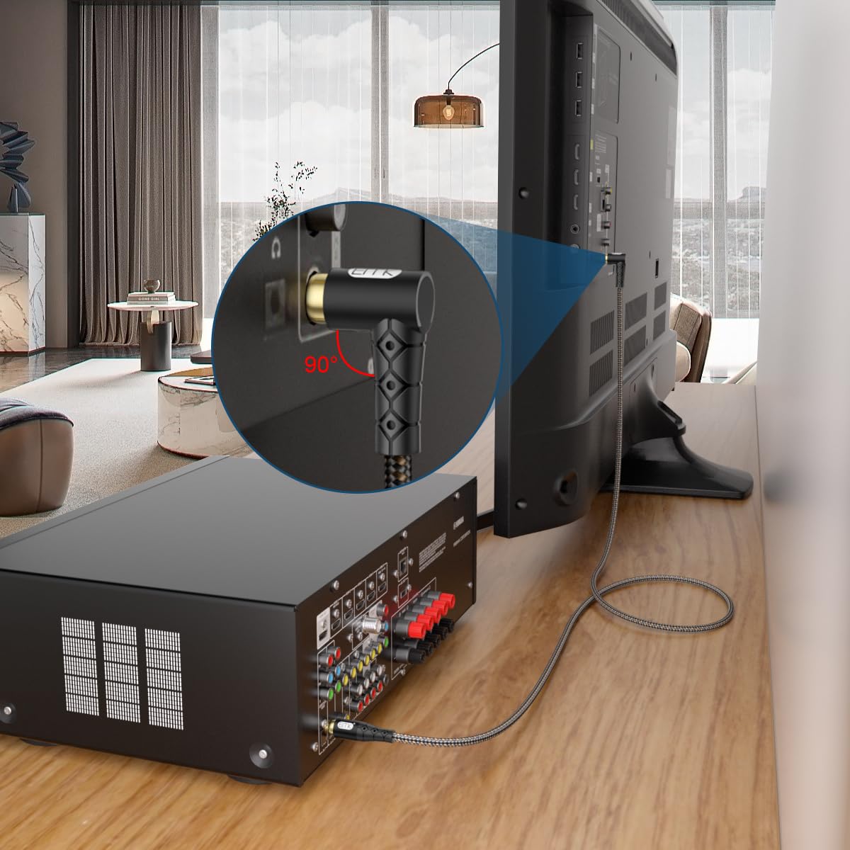 EMK 90 Degree RCA Subwoofer Cable 24K Gold-Plated Connector Nylon Braided Double Shielded – Support Digital & Analog Signals for Amplifier, Home Theater, Hi-Fi System,Subwoofer Black/25ft/8m
