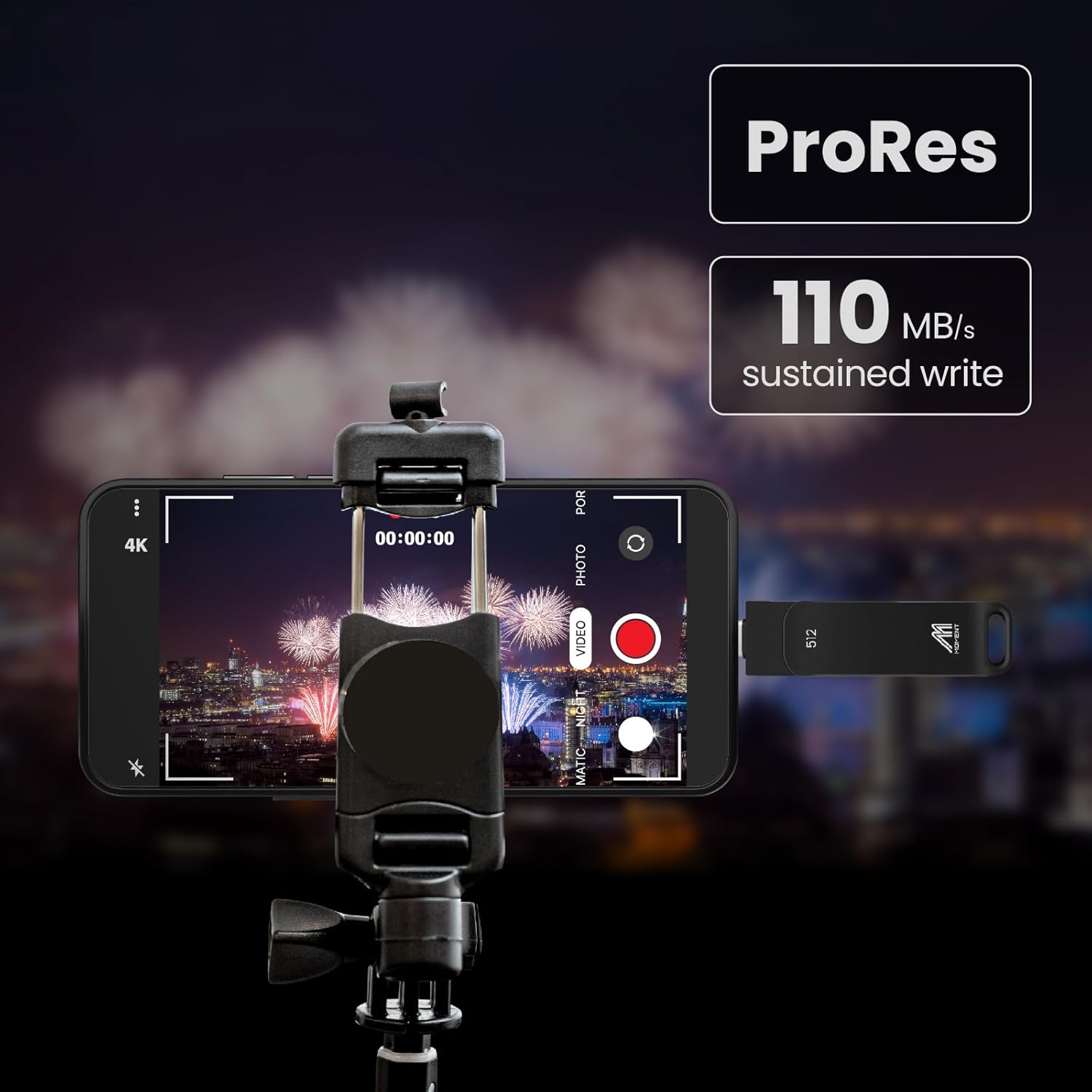 - Smooth 4K & ProRes Recording: Up to 110MB/s sustained write speed ensures stable video capture with no dropped frames—ideal for iPhone 15 Pro, drones, and cameras