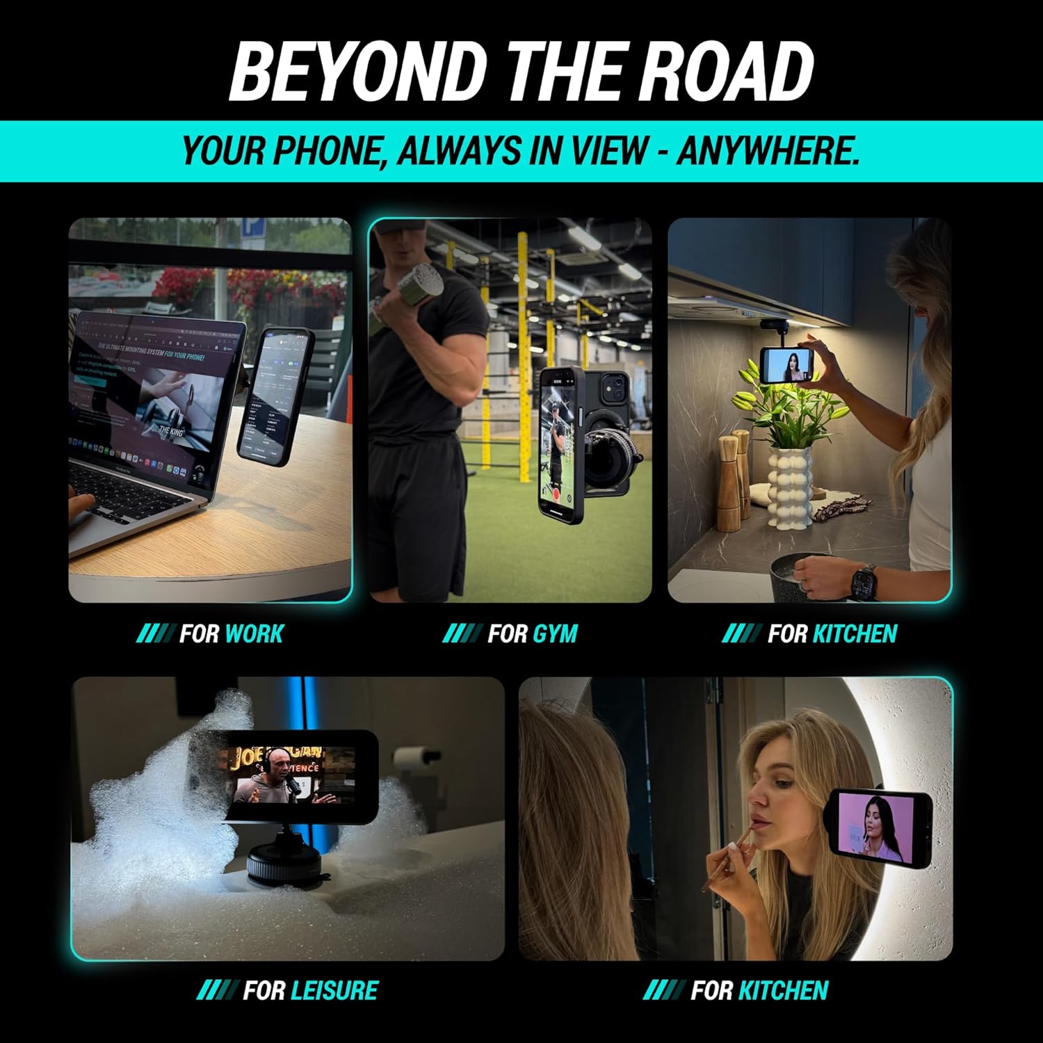 - All-surface ready – Use this magnetic phone mount for car, kitchen, desk, or mirror; the suction phone mount grips dashboards, windshields, and smooth counters. For content creators it's an ideal phone stand for recording.