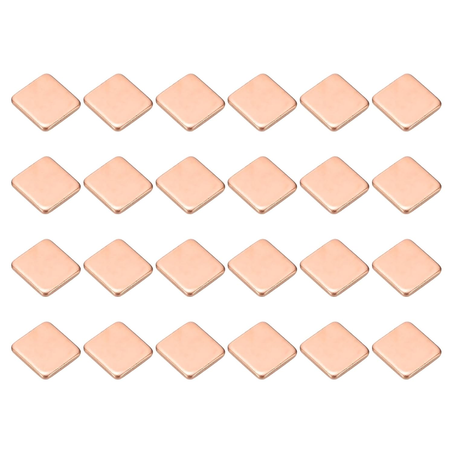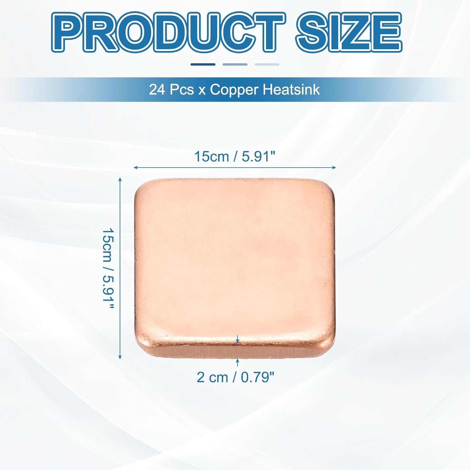 - Color: Copper Tone; Material: Copper; Size: 15 x 15 x 2 cm / 5.91 x 5.91 x 0.79 Inch (LxWxT); Package List: 24 Pcs x Copper Heatsink