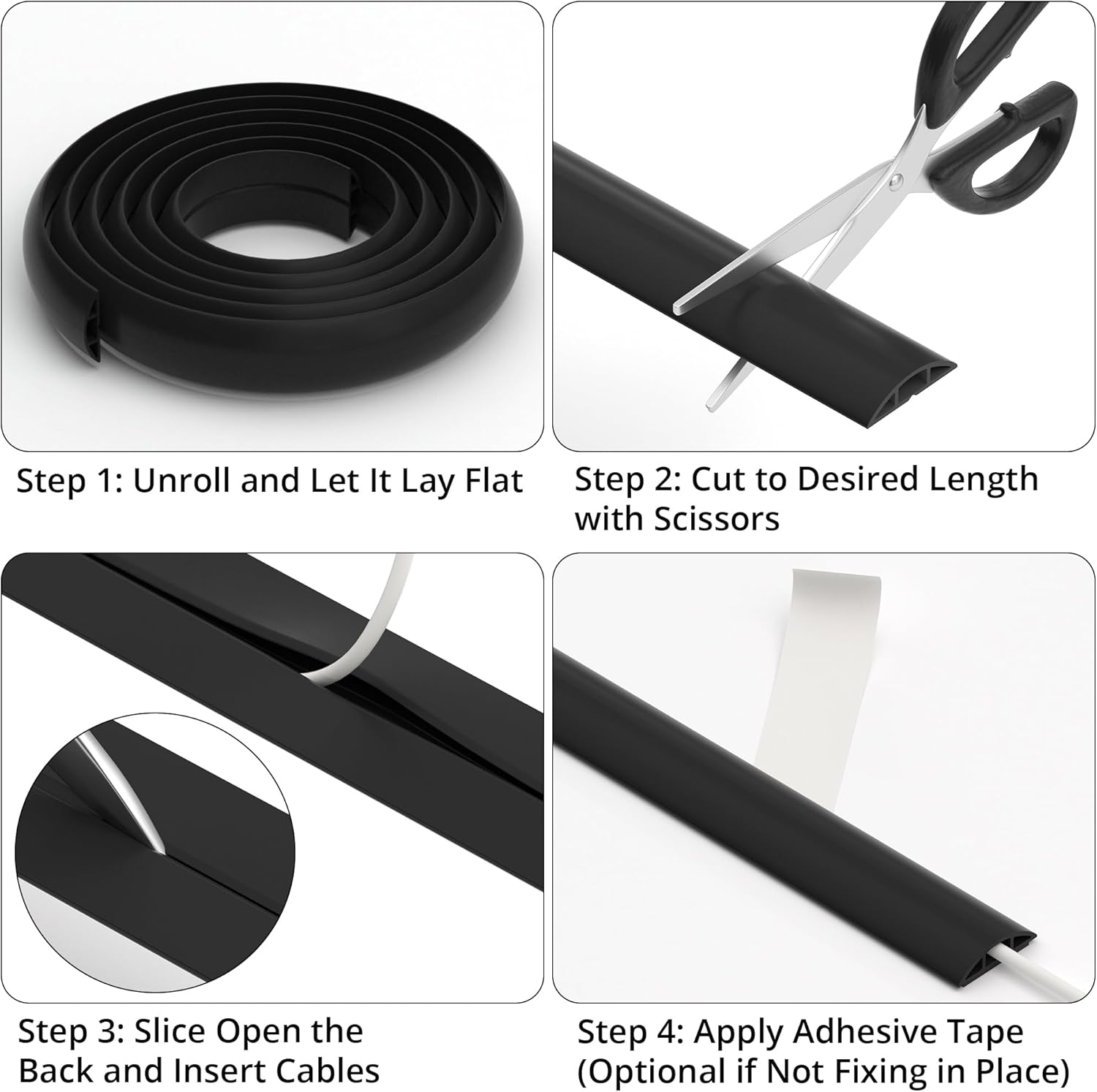 - All-Around Cable Protection for Safety: This cord concealer effectively protects cords from wear, crushing, or pet chewing - extending cable life and reducing safety hazards. Ideal for families with children or pets needing wire management and perfect for high-traffic areas. Not suitable for outdoor or rough ground
