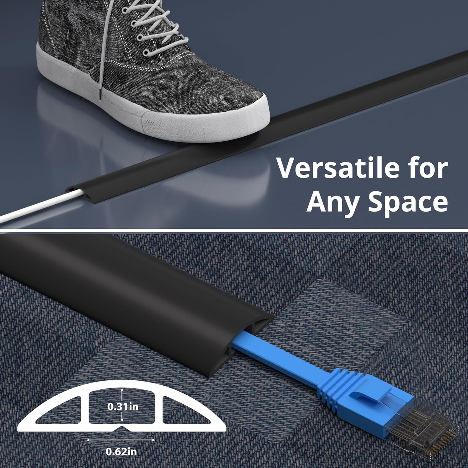 - All-Around Cable Protection for Safety: This cord concealer effectively protects cords from wear, crushing, or pet chewing - extending cable life and reducing safety hazards. Ideal for families with children or pets needing wire management and perfect for high-traffic areas. Not suitable for outdoor or rough ground