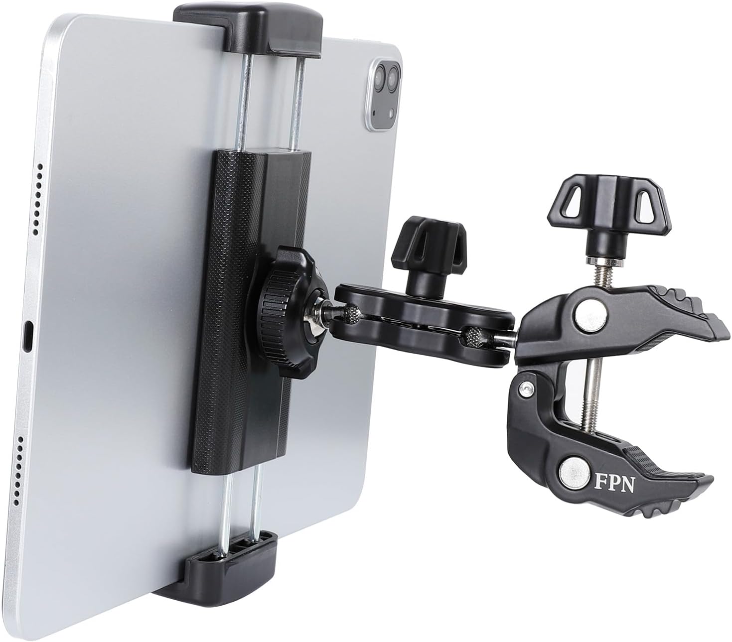 Tablet Holder for Microphone Stand/Treadmill/Spin Bike/Stroller/Golf Cart/Handlebar/Stationary Bike, Phone iPad Holder Mount for iPad Pro 12.9, Galaxy Tabs, iPhone(4.7-13”)