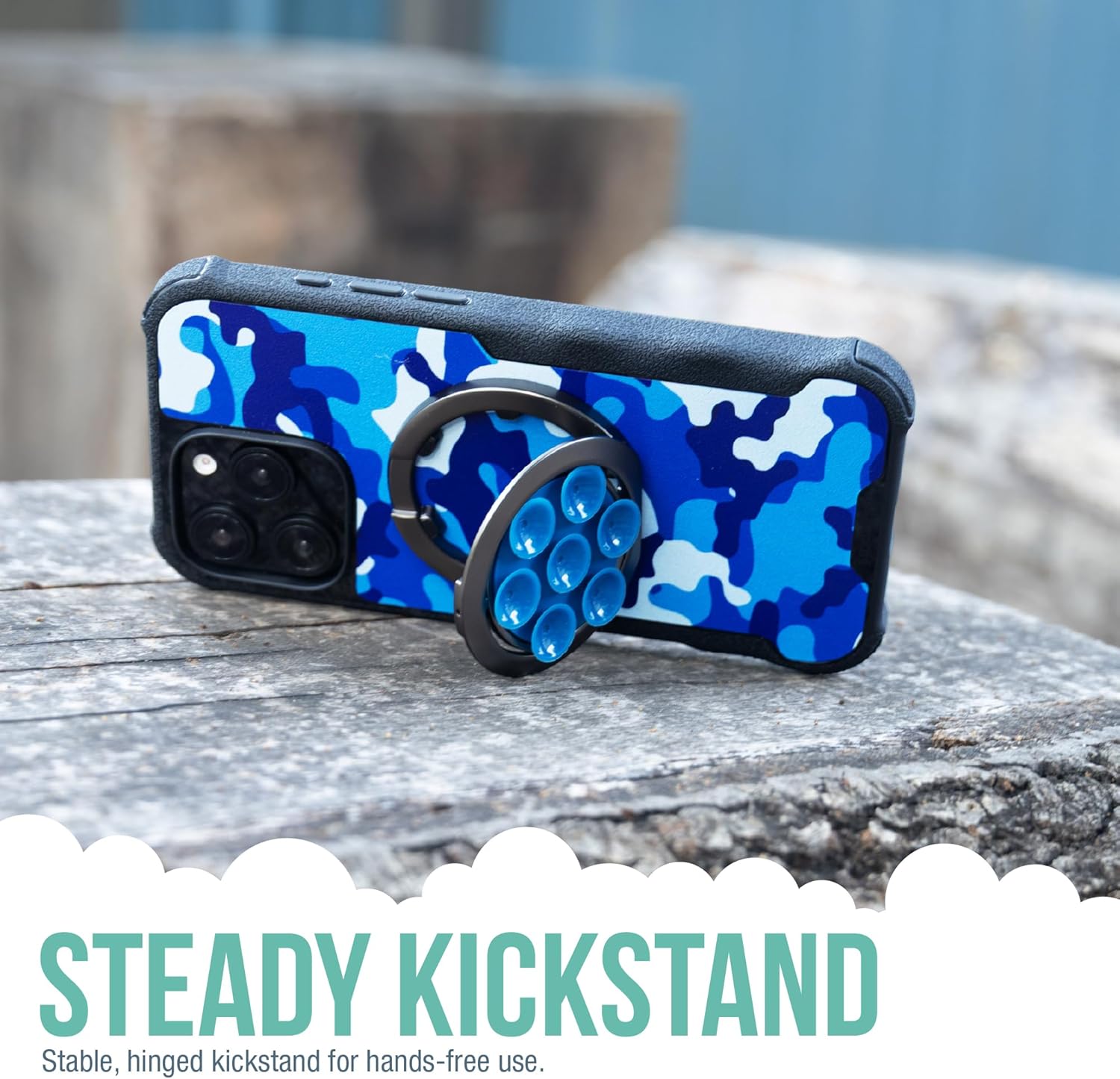 Smartish® MagSafe Suction Mount - WallFlower - 3 in 1 Reversible Magnetic Phone Grip Finger Loop, Suction Mount, Kickstand w/Universal MagSafe Adapter Kit for Apple iPhone - Blues on The Green