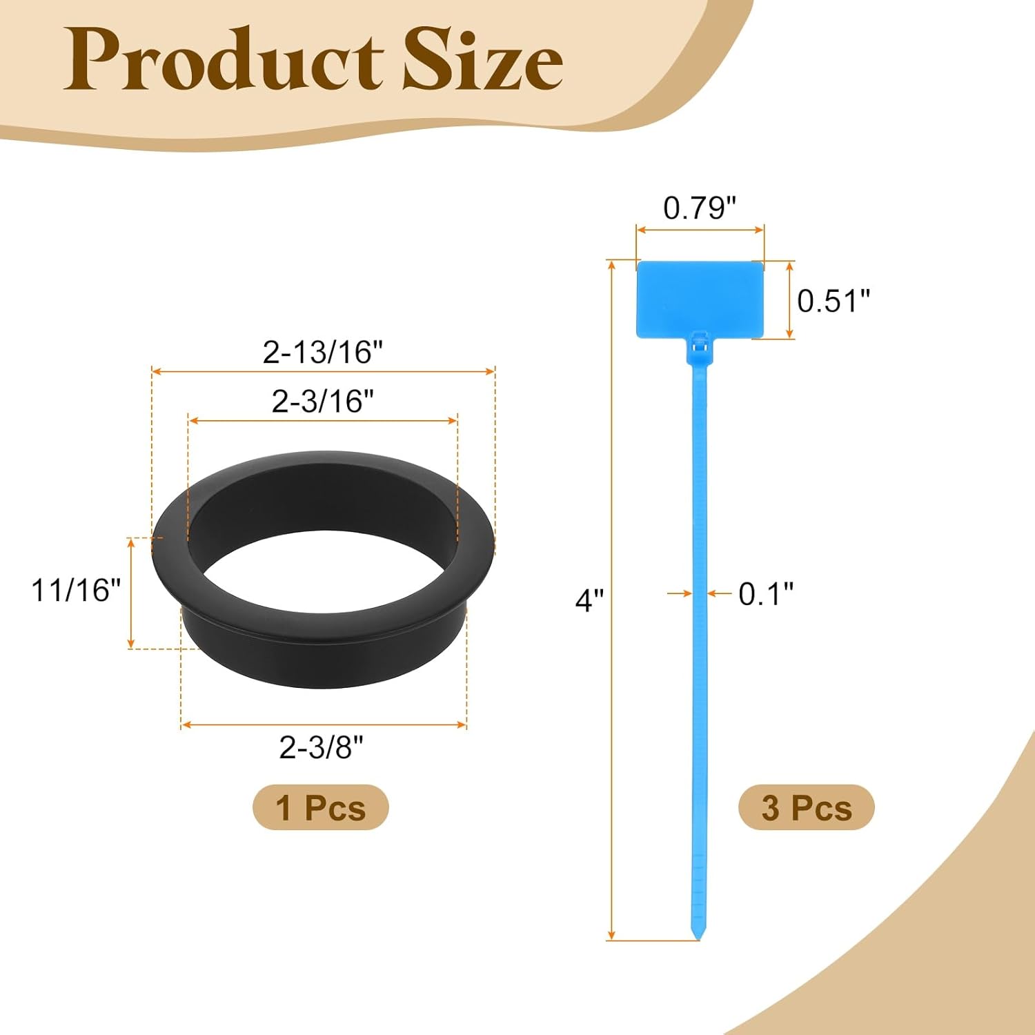 - Size & Package: This grommet fits a hole of 60mm/ 2-3/8 inch diameter, the inner diameter is 56mm/ 2-3/16 inch, the outer diameter is 71mm/2-13/16 inch, and the height is 17mm/11/16 inch. You will receive 1ps grommets and 3ps marked cable ties