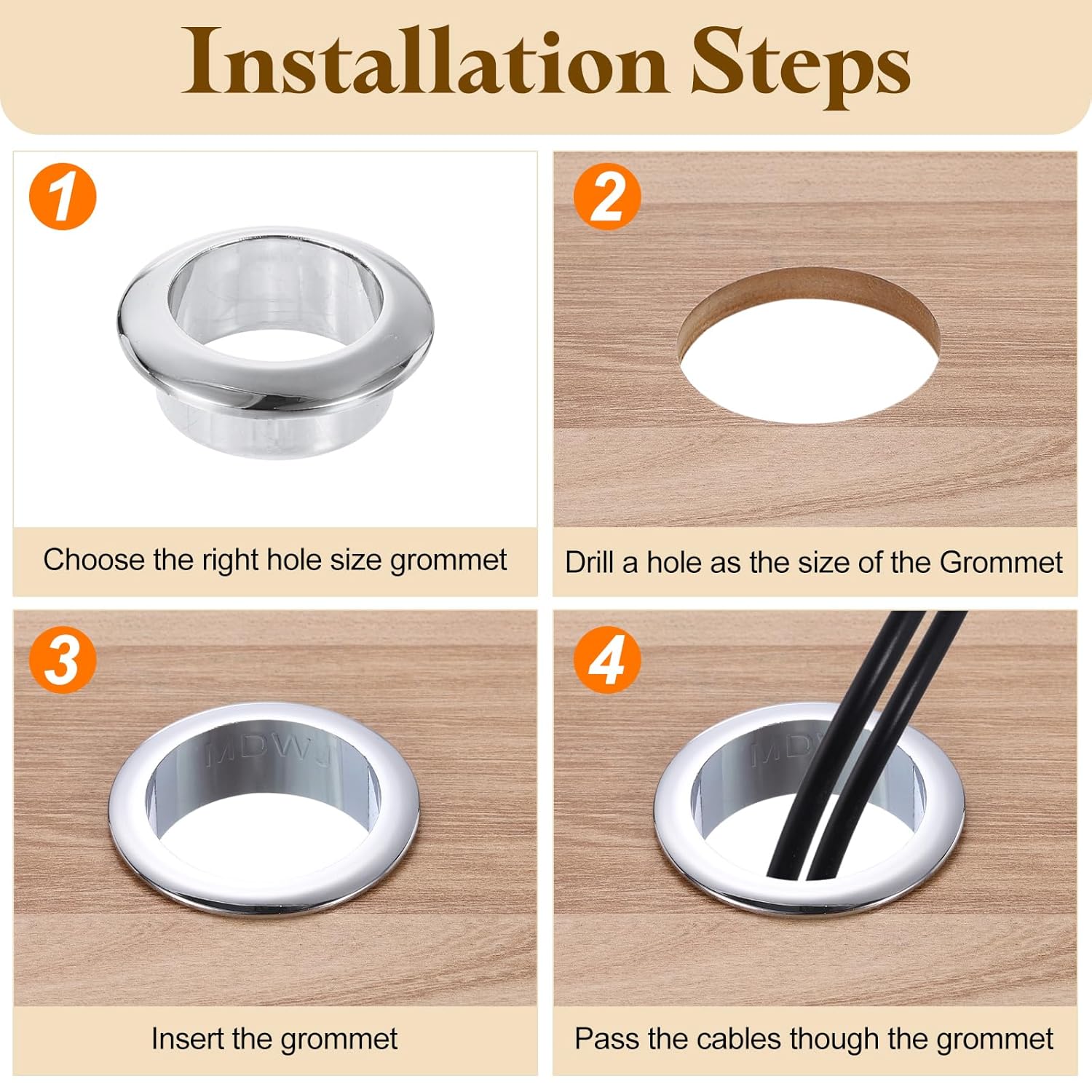 - Design: The cable grommet has a large aperture and can accommodate multiple cables, protecting the wires from friction and damage. The desktop hole cover has a metallic luster, a beautiful appearance, well match your desktop
